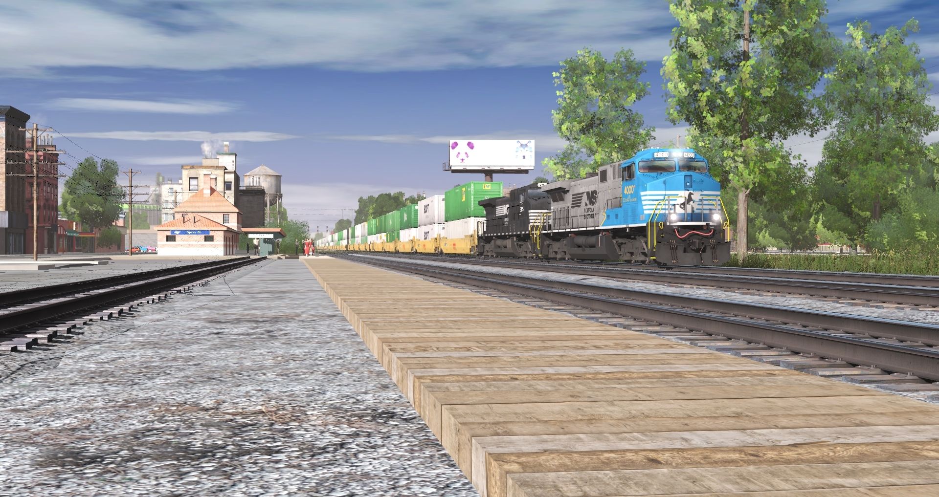 Tags: Trainz Railroad Simulator 2019, Norfolk Southern Opeya District, NS AC44C6M #4000 (2016-era), NS C40-9W, 53ft DTTX Wellcar Weathered (Single), 53ft DTTX Wellcar (Single)