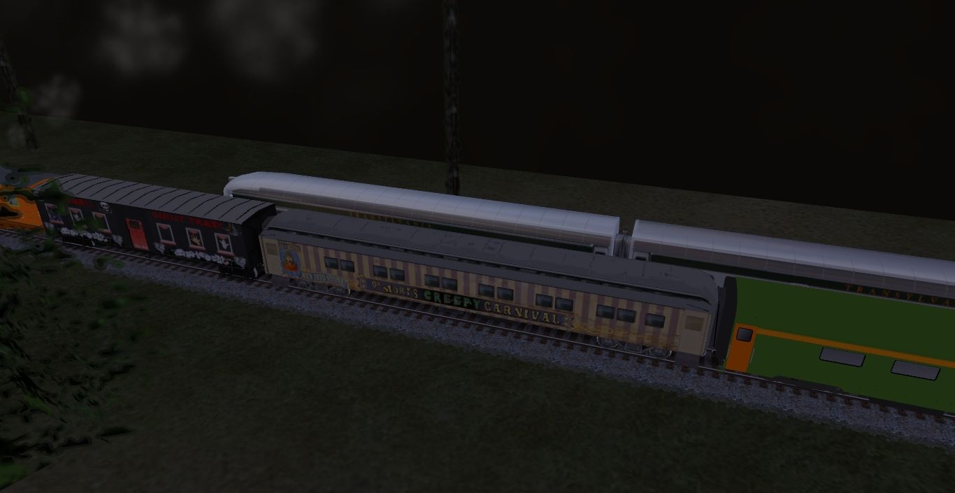 Tags: Trainz: A New Era, Modula City Haunted Hill, Halloween Night, Halloween Transylvania Railroad M1b 4-8-2 #3118, Halloween Transylvania Railroad R2sa 4-8-4 #3119, 2-8-2 DRGW/Huckleberry Railroad 464 K-27, TPTC ALCO 0-6-0T #300, Dalek, streetcar, Halloween Transylvania Railroad USRA 0-8-0, Halloween Dr. Mort's Creepy Carnival, Halloween Transylvania Railroad Budd Observation 1931, Halloween Dr. Frankenstein's Portable Labrotory, Halloween Hagar's Ghost Train Car