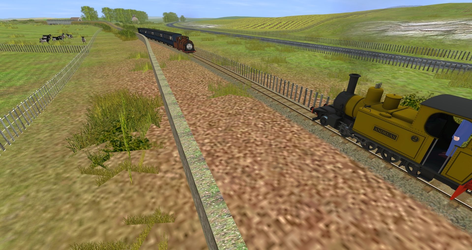 Tags: Trainz: A New Era, Mid-Sodor Railway, Default, Andreas the Arrogant Engine, MSR #1 - Duke, MSR Bogey Coach With Faces, MSR Passenger Guard Van, MSR #1 - Duke's Tender