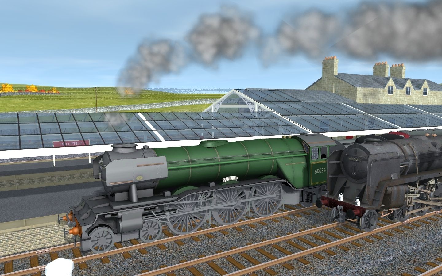 Tags: Trainz: A New Era, SnC Carlisle Skipton, Thames Clyde Express, Gresley A3 BR Green loco, BR 9f Single Chimney AWS Fitted, Gresley A3 BR Green corridor tender, BR 9f tender BR1C Late Logo, BR Mk1 BCK Maroon, BR 25T Anhydrite Hopper, BR Mk1 CK Maroon, BR Mk1 SK Maroon, BR Mk1 RMB (diag 99) Maroon, BR Mk1 FK Maroon, BR Freight CAR Brake Bauxite