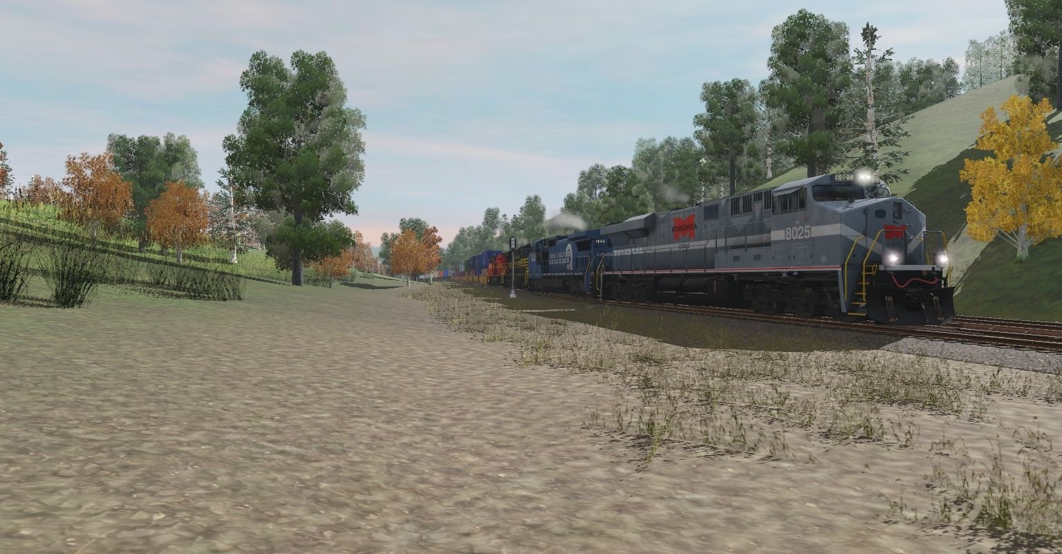 Tags: Trainz Railroad Simulator 2019, freelance CN&W/UP BNSF NS CSX, C&NW Railroad-Iowa Division Route (circa 1980)revised - Default, NS ES44AC MGA Heritage 8025, NS C40-8W patch, NS ES44AC NKP Heritage 8100, NS ES44AC NS Heritage 8114, NS ES44AC COG Heritage 8101, ATSF ES44DC, ATSF C40-8W, ATSF B40-8W, ATSF B40-8W BNSF Patch Weathered, TTX 53 Maxi-IV B, TTX 53 Maxi-IV C