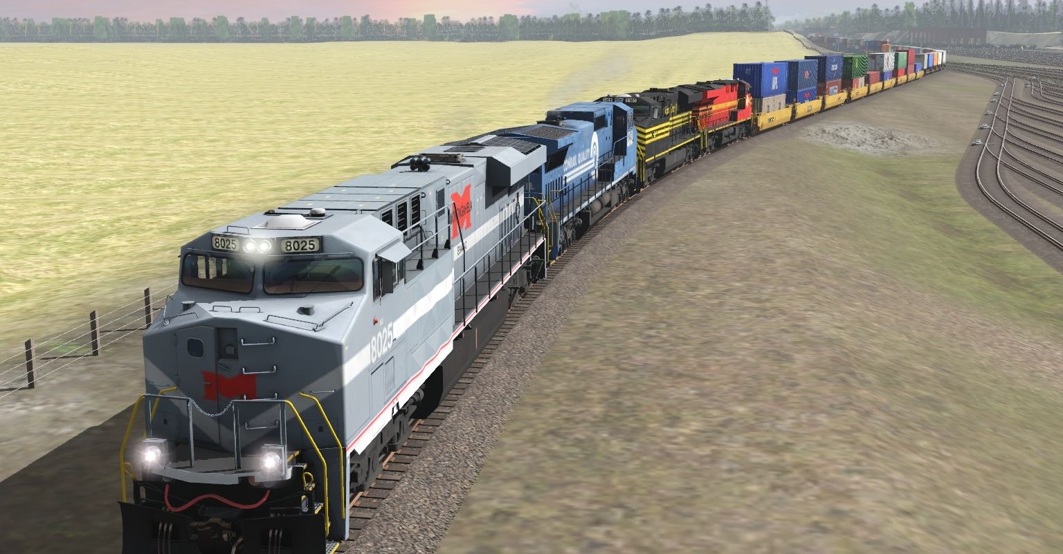 Tags: Trainz Railroad Simulator 2019, freelance CN&W/UP BNSF NS CSX, C&NW Railroad-Iowa Division Route (circa 1980)revised - Default, NS ES44AC MGA Heritage 8025, NS C40-8W patch, NS ES44AC NKP Heritage 8100, NS ES44AC NS Heritage 8114, NS ES44AC COG Heritage 8101, TTX 53 Maxi-IV B, TTX 53 Maxi-IV C, TTX 53 Maxi-IV A, Spinecar B Unit Dirty, Spinecar E Unit Dirty, Spinecar D Unit Dirty