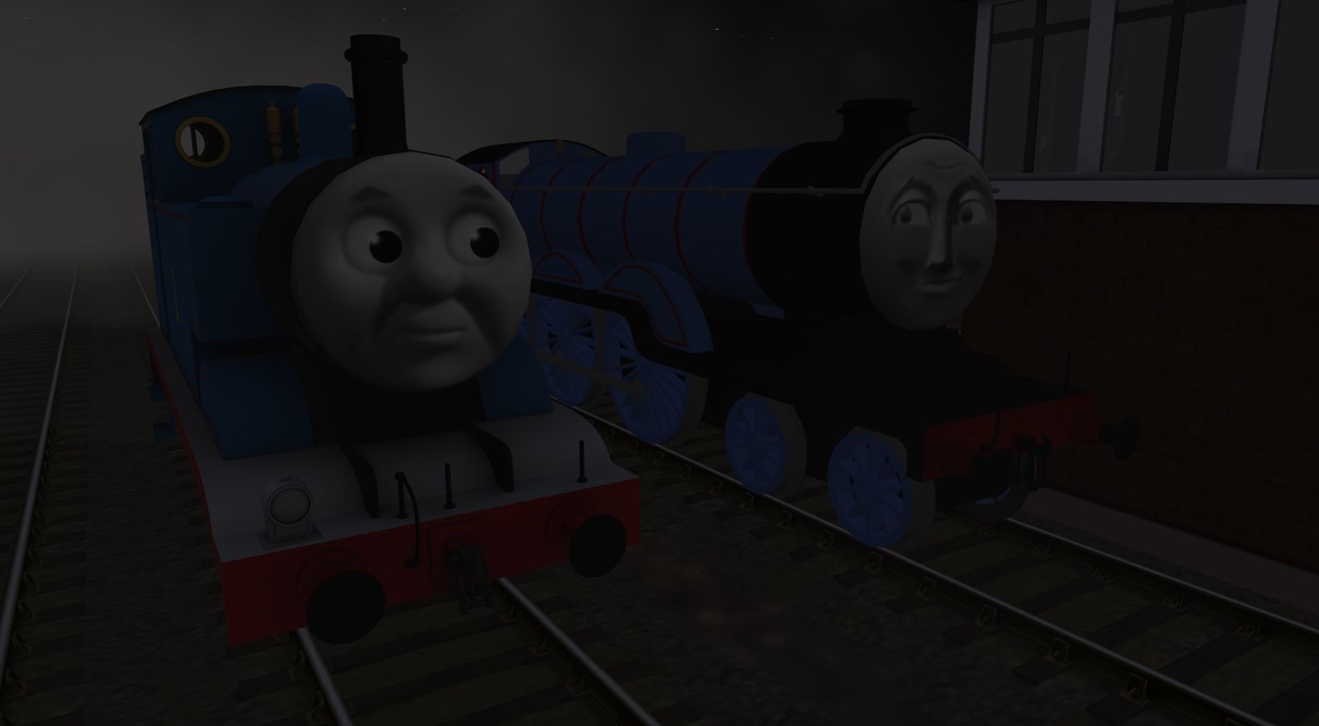 Tags: Trainz Railroad Simulator 2019, The Ghost of Monster Scray Steam Engines on Sodor Part 5, The Ghost of Monster Scray Steam Engines on Sodor Part 5 - Default, Flying Cam, Thomas The Tank Engine 2010, Alfred the Loaned Engine (Blue Livery), Alfred's Tender (Blue Livery), BR 27T Iron Ore Tippler - Standard #1, BR 27T Iron Ore Tippler - Standard #2, (#1TFM) Sodor Tanker Tidmouth 2015, BR 12T Standard Van
