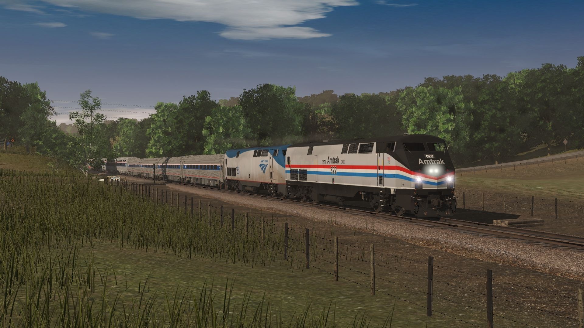 Tags: Trainz Railroad Simulator 2019, Coal Country, AMTK P40DC Exhibit Train phIII, AMTK P42DC ph V, Amtrak Phase IVb Amfleet Coachclass, Amtrak Viewliner Sleeper Phase IVb, Amtrak Viewliner Baggage, Pullman Dover Harbor 10-1-2