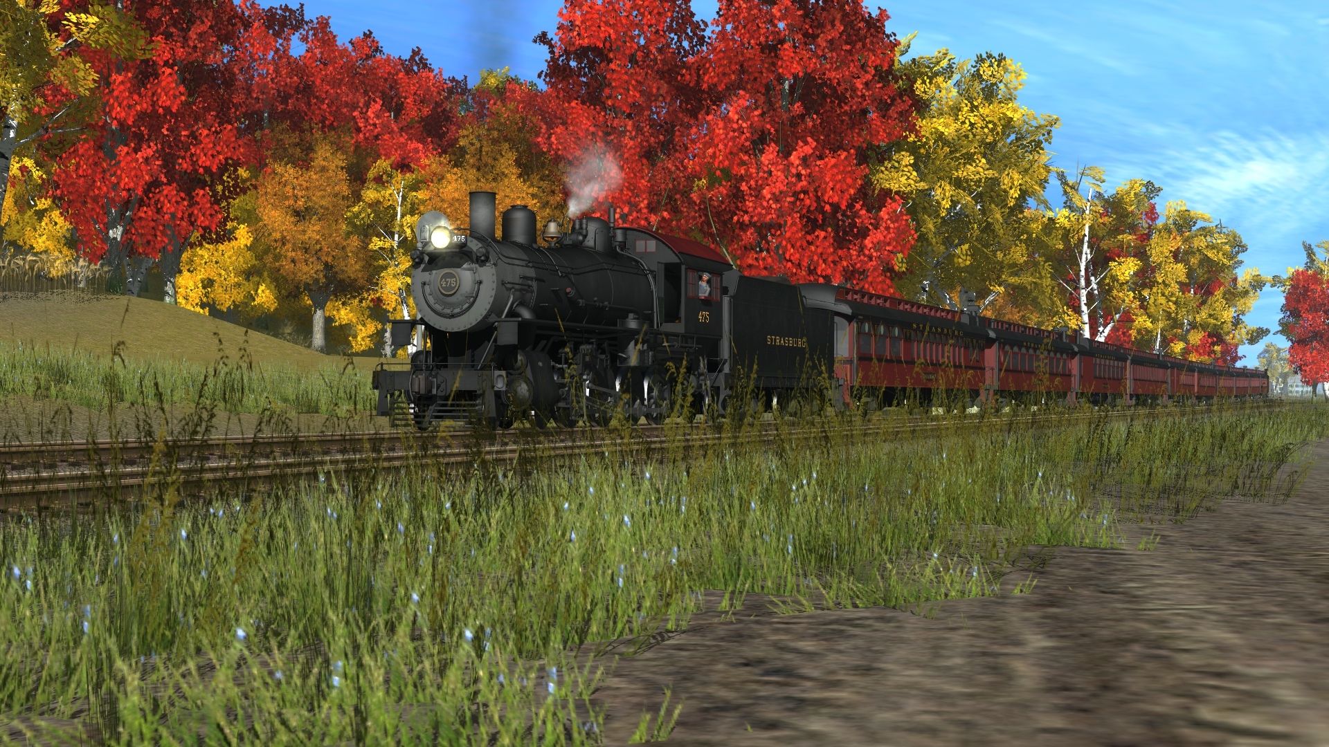 Tags: Trainz: A New Era, Strasburg Railroad V3.1, Fall session, SRC 475 Engine V2, EMD SW8 - Strasburg, SRC 90 Engine V7, SRC E10a Engine V2.1, SRC 31 Engine V5, SRC 475 Tender V2, SRC Parlor Marian, SRC Lounge Henry K Long, SRC Dining Lee E Brenner, SRC Coach Huber Leath, SRC Combine Donald E L Hallock