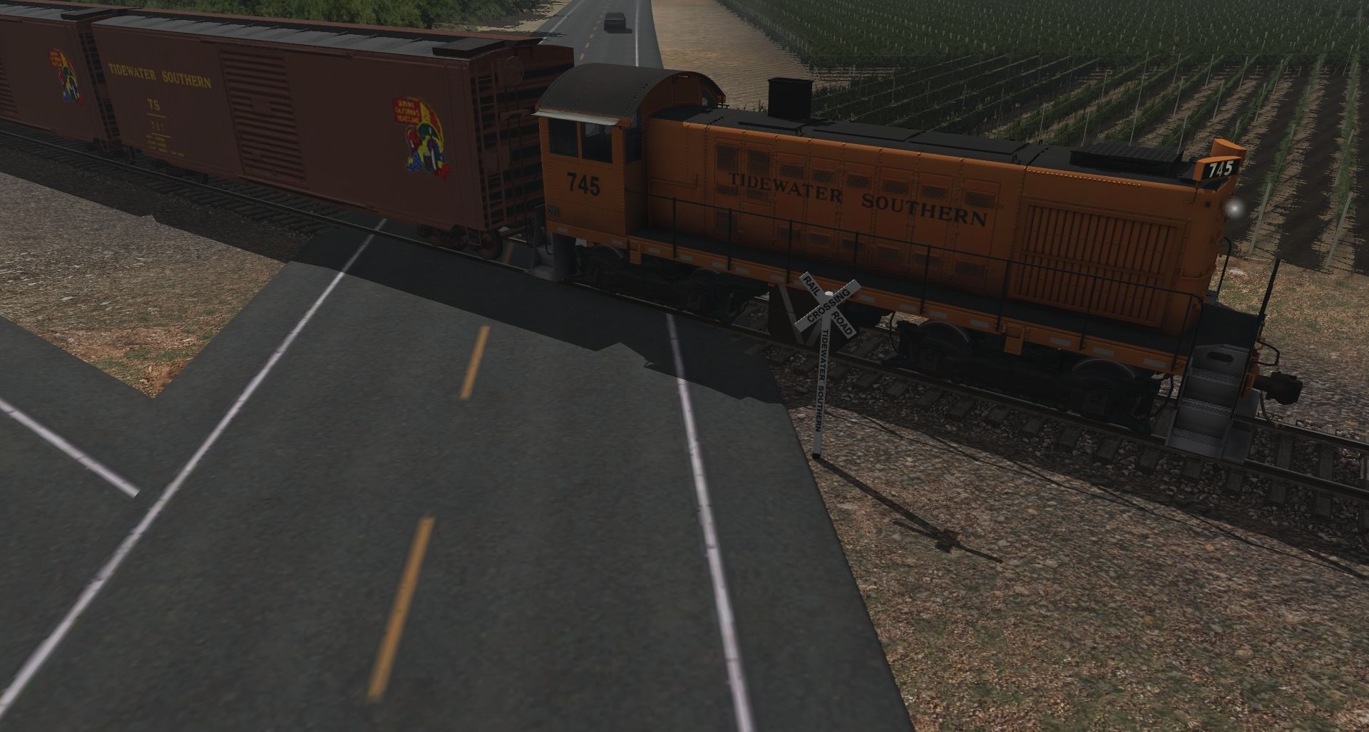 Tags: Trainz Railroad Simulator 2019, TidewaterSouthern-2019-B, TidewaterSouthern-2019-B - Default, TS S2 745, 50ftBoxcar Tidewater Southern #, 50ftBoxcar Western Pacific DD #, 50ftBoxcarWesternPacific19818ant, 50ft Reefer WP 96117, 50ft Reefer WP 95962, 50ft Reefer WPRX 97034, 50ft Reefer WP 68603, WP 40' Boxcar, WP C50-9 Caboose