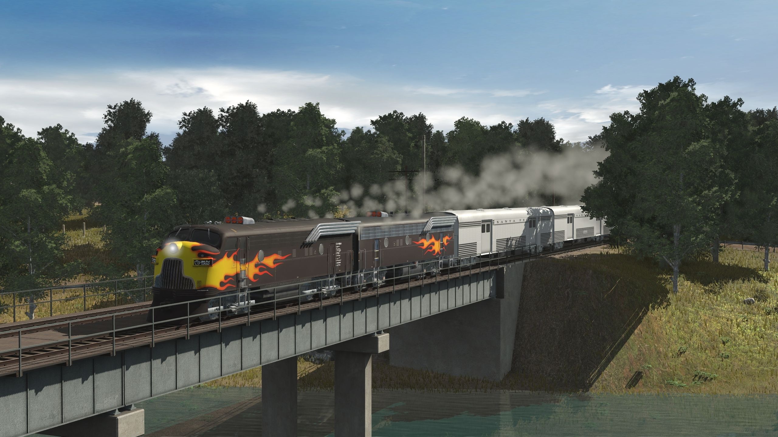 Tags: Trainz Railroad Simulator 2019, Heart of Illinois, 1 Hot Rod Special F7, F7 Hotrod B unit, ATSF SS Baggage Car, ATSF SS Diner, ATSF SS Chair Car, ATSF SS Pleasure Dome, ATSF SS Pullman - Pine series, ATSF SS Obs Navajo