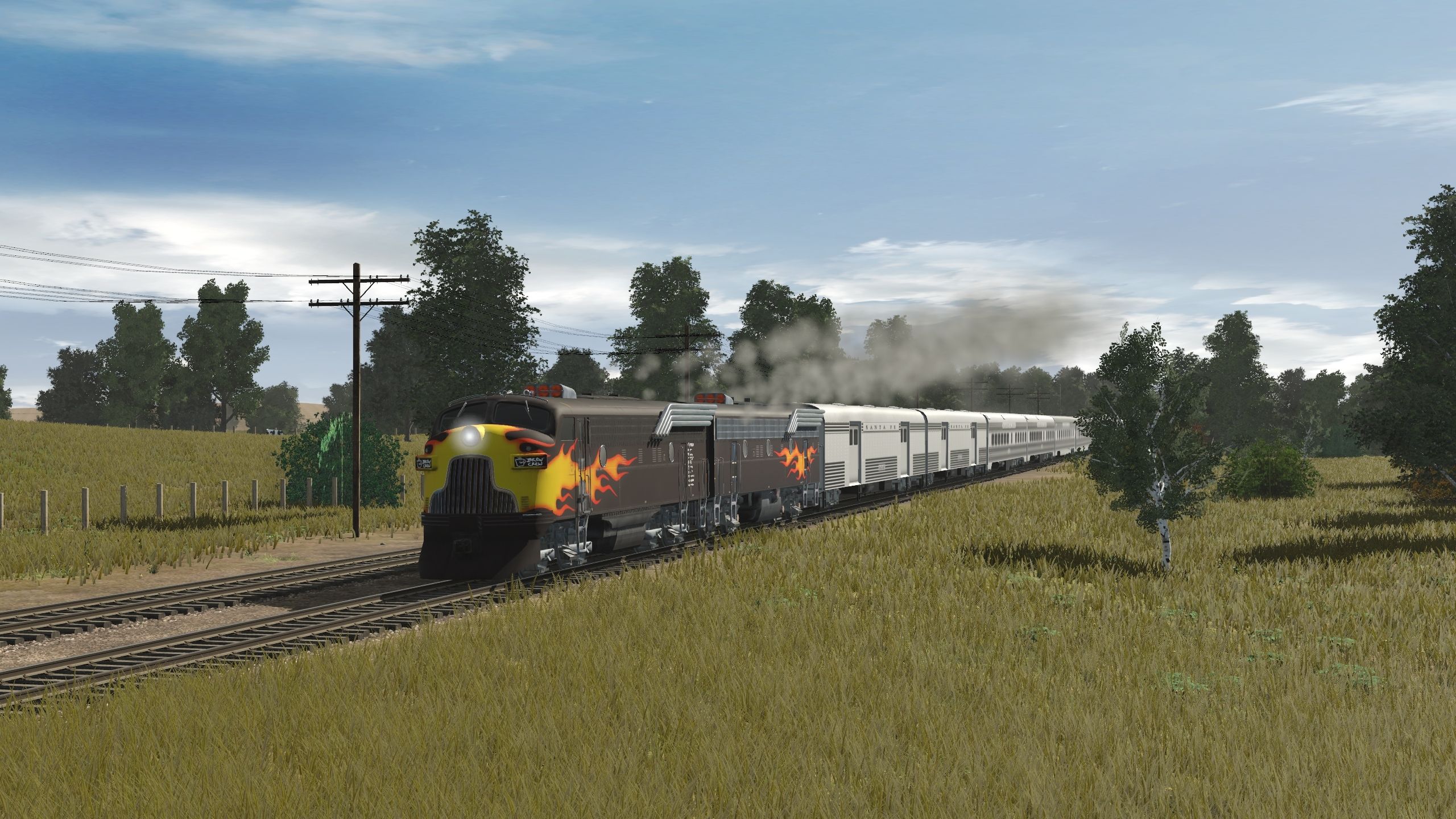Tags: Trainz Railroad Simulator 2019, Heart of Illinois, 1 Hot Rod Special F7, F7 Hotrod B unit, ATSF SS Baggage Car, ATSF SS Diner, ATSF SS Chair Car, ATSF SS Pleasure Dome, ATSF SS Pullman - Pine series, ATSF SS Obs Navajo