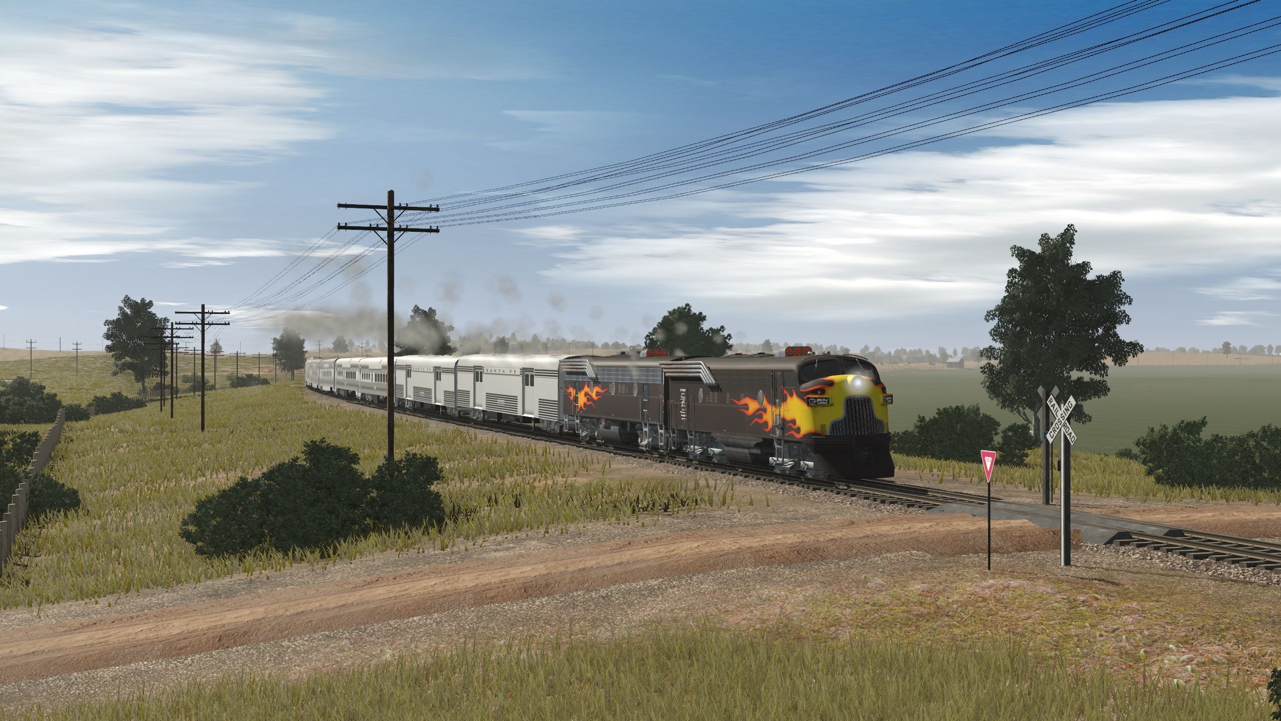 Tags: Trainz Railroad Simulator 2019, Heart of Illinois, 1 Hot Rod Special F7, F7 Hotrod B unit, ATSF SS Baggage Car, ATSF SS Diner, ATSF SS Chair Car, ATSF SS Pleasure Dome, ATSF SS Pullman - Pine series, ATSF SS Obs Navajo