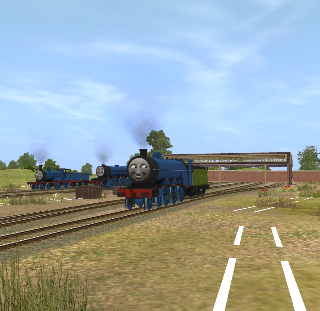 Tags: Trainz: A New Era, RWS Tidmouth Sheds v3 (WNW), RWS Henry (Original Shape - NWR Blue Square Buffers), RWS Edward (Current Shape), RWS Gordon (Original Shape - NWR Blue), RWS Henry Tender (Original Shape - NWR Green), Sodor Breakdown Flat Truck, Sodor Breakdown Crane Lowered, Sodor Works Unit Coach, RWS Edward (Furness - NWR) Tender, RWS Gordon (Original Shape - NWR Blue) Tender
