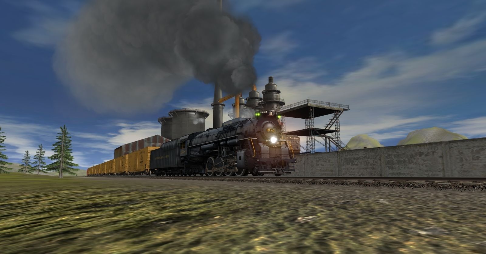 Tags: Trainz: A New Era, Kickstarter County, Default, C&O Kanawha K-4 Steam, C&O Kanawha K-4 Tender, Custom 60' ACF Boxcar - Sam & Euan's, ATSF Ce-11 Caboose