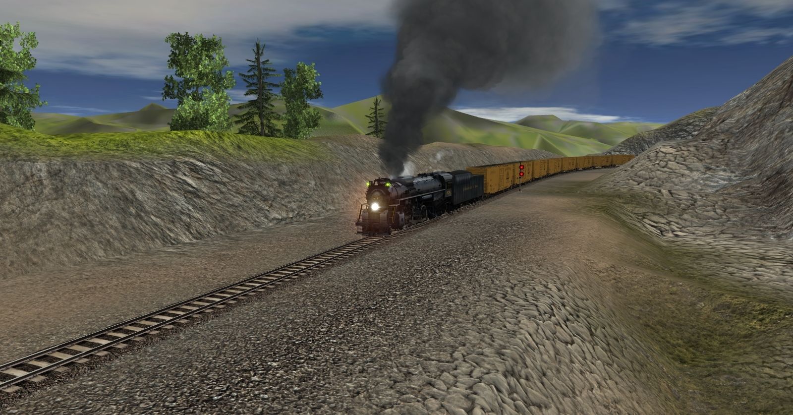 Tags: Trainz: A New Era, Kickstarter County, Default, C&O Kanawha K-4 Steam, C&O Kanawha K-4 Tender, Custom 60' ACF Boxcar - Sam & Euan's, ATSF Ce-11 Caboose