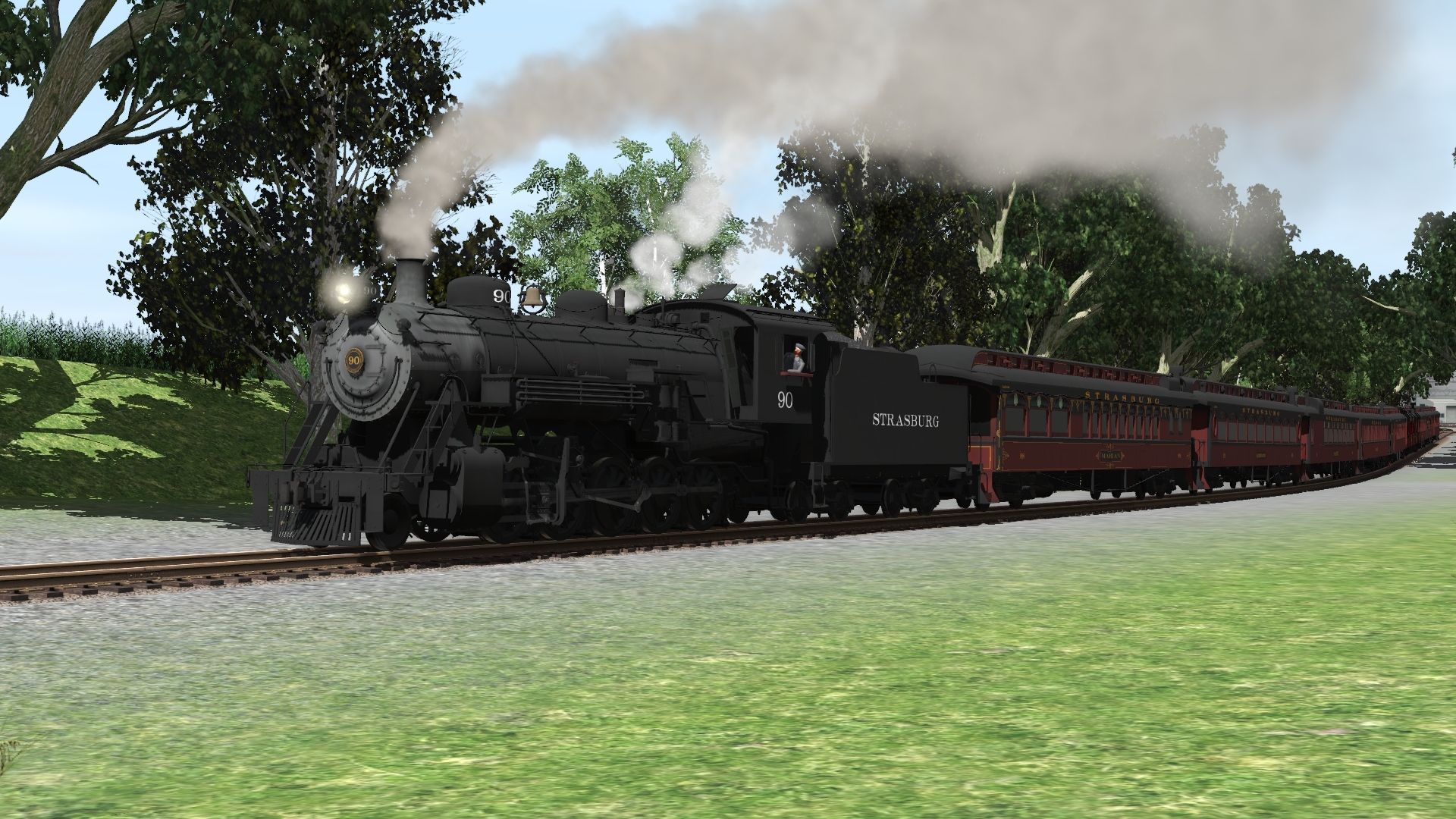 Tags: Trainz Railroad Simulator 2019, Strasburg Railroad V3.2, Default, SRC 90 Engine V7, SRC 90 Tender V6 & V7, SRC Parlor Marian, SRC Lounge Henry K Long, SRC Dining Lee E Brenner, SRC Coach Huber Leath, SRC Combine Donald E L Hallock, SRC Coach Warren F Benner, SRC Coach Gobbler's Knob, SRC Open Window Daffodil Spring, SRC Open Window Hello Dolly