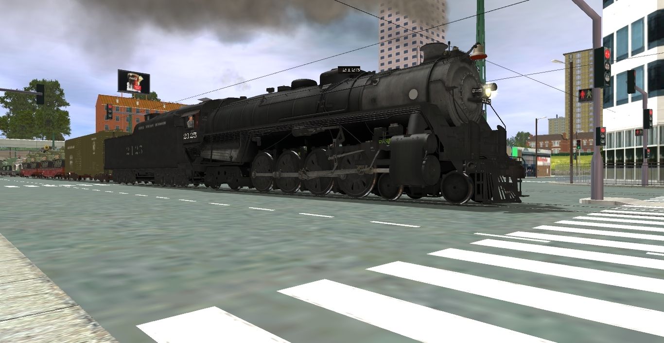 Tags: Trainz: A New Era, Street Running, Mopac for Victory!, MP N-75 4-8-4 #2125, USRA Light 4-8-2 Mountain, MP N-75 4-8-4 #2125 Tender, US Army AAR Boxcar, Flatcar50ft Missouri Pacific hw#, Flatcar 40ft Missouri Pacific #, USRA C Gondola MP, US Army Ammo AAR Boxcar, MP 13333 Caboose, USRA Light 4-8-2 tender, MP Pullman Baggag car