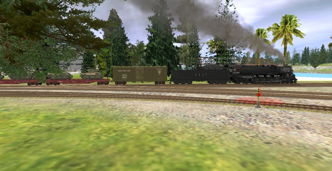 Tags: Trainz: A New Era, Street Running, Mopac for Victory!, MP N-75 4-8-4 #2125, USRA Light 4-8-2 Mountain, US Army AAR Boxcar, Flatcar50ft Missouri Pacific hw#, MP N-75 4-8-4 #2125 Tender, Flatcar 40ft Missouri Pacific #, USRA C Gondola MP, US Army Ammo AAR Boxcar, MP 13333 Caboose, USRA Light 4-8-2 tender, MP Pullman Baggag car