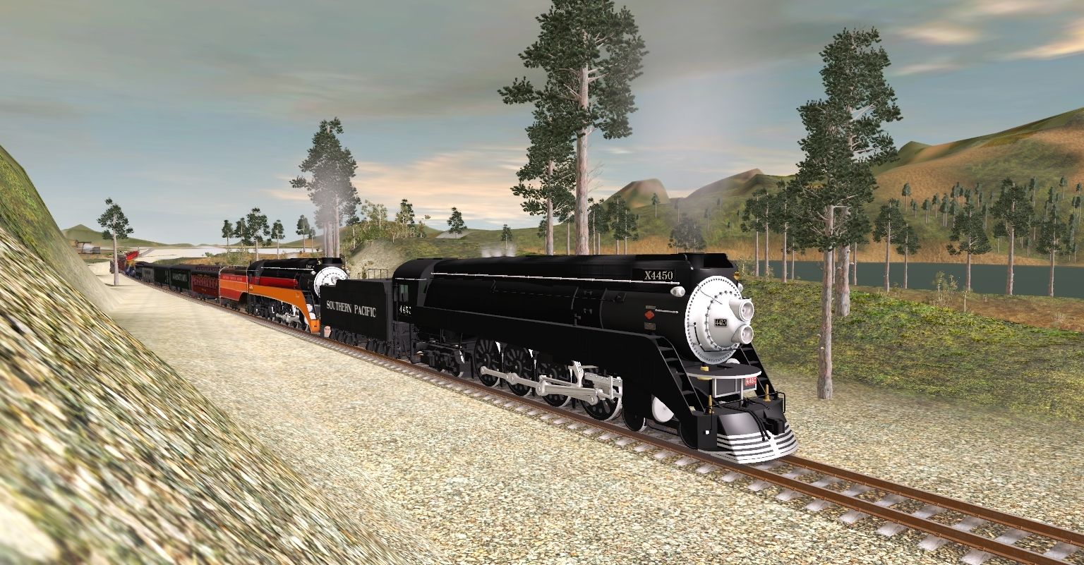 Tags: Trainz Railroad Simulator 2019, Kickstarter County 2, Default, SP GS-4 Engine War Baby, SP GS-4 Engine Daylight, SP GS-8 Tender, USA SP Class GS-4 Tender, SRC Coach Warren F Benner, Southern Coach 1067 Archroof, Southern Coach 726 Man O War, Southern Coach 829 Lounge, Southern Observation 1056 Lookout Mountain, RMRX 'Red Leaf' Coach, RMRX 'Silver Leaf' Glacier Dome