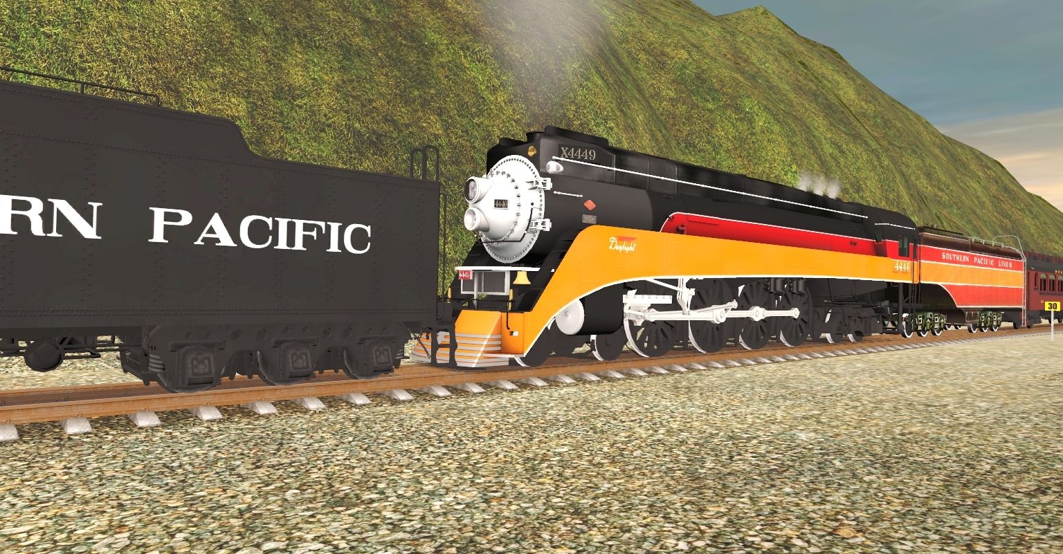 Tags: Trainz Railroad Simulator 2019, Kickstarter County 2, Default, SP GS-4 Engine War Baby, SP GS-4 Engine Daylight, SP GS-8 Tender, USA SP Class GS-4 Tender, SRC Coach Warren F Benner, Southern Coach 1067 Archroof, Southern Coach 726 Man O War, Southern Coach 829 Lounge, Southern Observation 1056 Lookout Mountain, RMRX 'Red Leaf' Coach, RMRX 'Silver Leaf' Glacier Dome