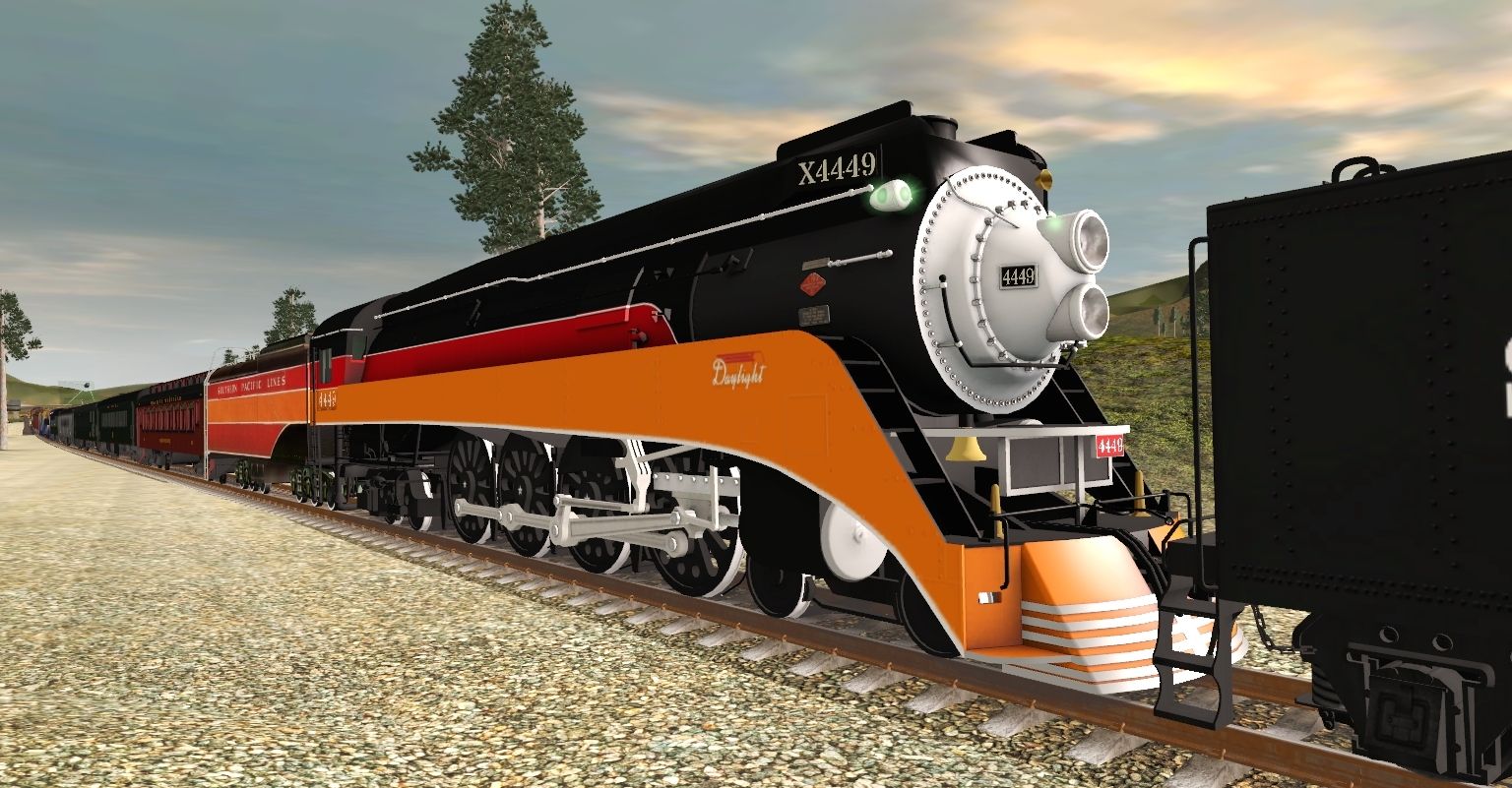 Tags: Trainz Railroad Simulator 2019, Kickstarter County 2, Default, SP GS-4 Engine Daylight, SP GS-4 Engine War Baby, SP GS-8 Tender, USA SP Class GS-4 Tender, SRC Coach Warren F Benner, Southern Coach 1067 Archroof, Southern Coach 726 Man O War, Southern Coach 829 Lounge, Southern Observation 1056 Lookout Mountain, RMRX 'Red Leaf' Coach, RMRX 'Silver Leaf' Glacier Dome