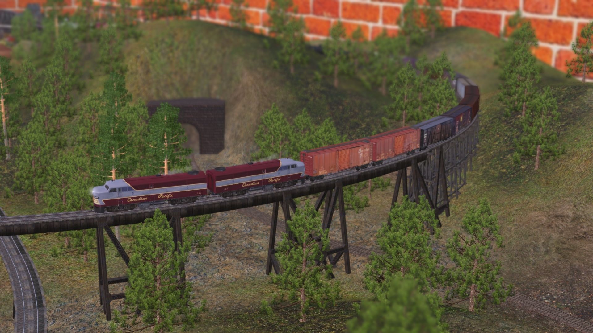 Tags: Trainz Railroad Simulator 2019, ME TRS19 - The Mann Phrom Laramee RR - Model Trainz Layout, CP FPA2, CP SD9043MAC, EMD GP30 SOO #700, EMD GP35 CP #5010, EMD GP35 CP #5011, R4P CP RS3 #8452 dirty(heavy), R4P CP RS3 #8448 dirty(light), GE ES44AC CP 9350-9379, EMD SD40-2 CP #6012, EMD SD40-2 CP #5990, CP H1d 4-6-4