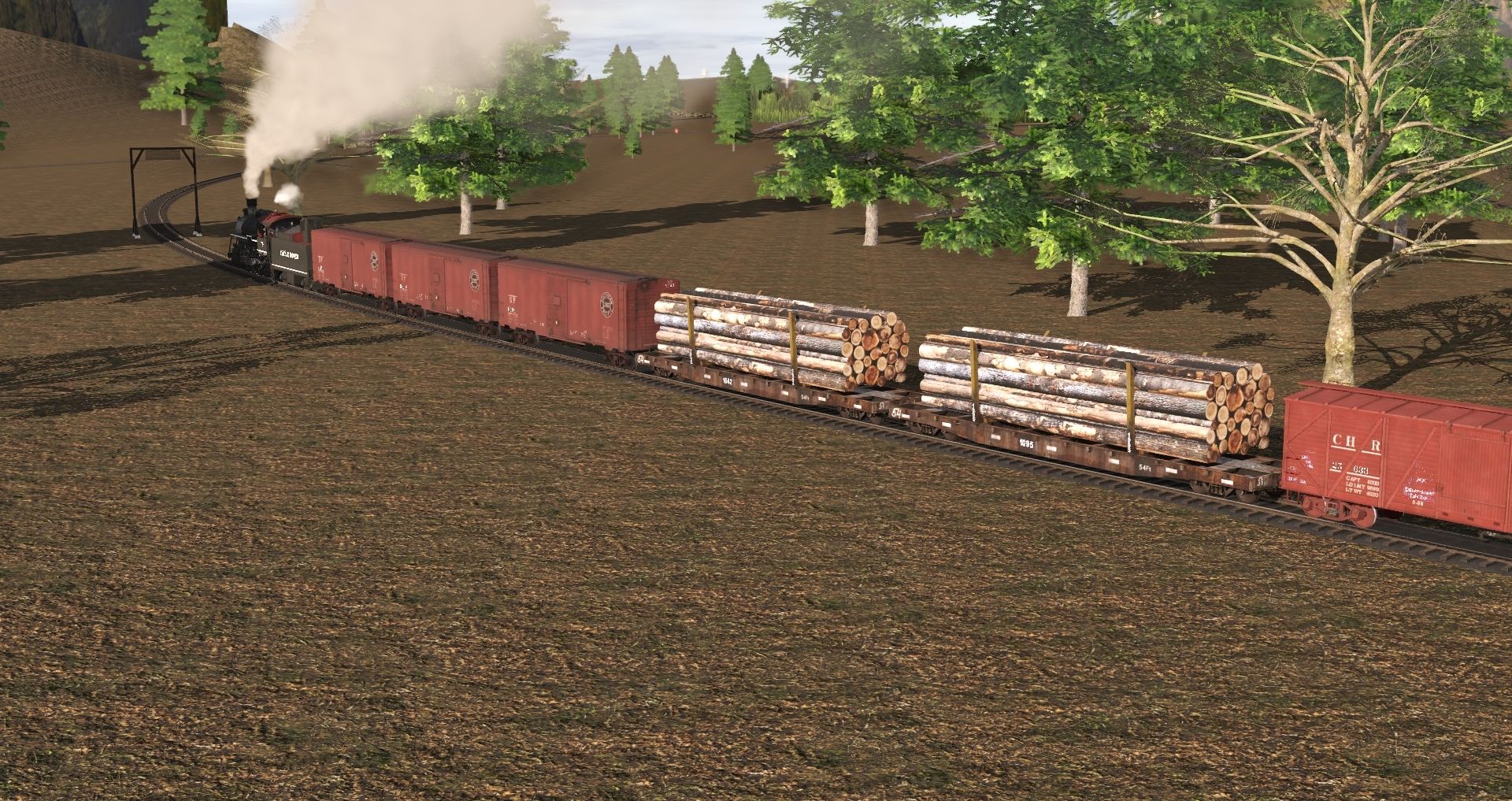 Tags: Trainz Railroad Simulator 2019, Frost River Central V.31, Frost River Central V.31 - Default, Eagle River 2-8-0 Engine, ALCO 0-6-0T Blank v1, ERSX 54ft flatcar, 40ft Boxcar CN, C&HR 25000 series boxcar, 40ft Boxcar Erie - Steel Ends, 38' X-3 Tank Car UTLX, C&HR Caboose #1753, 40ft Boxcar SP B-50-20, Eagle River 2-8-0 Tender, Generic Bobber Caboose