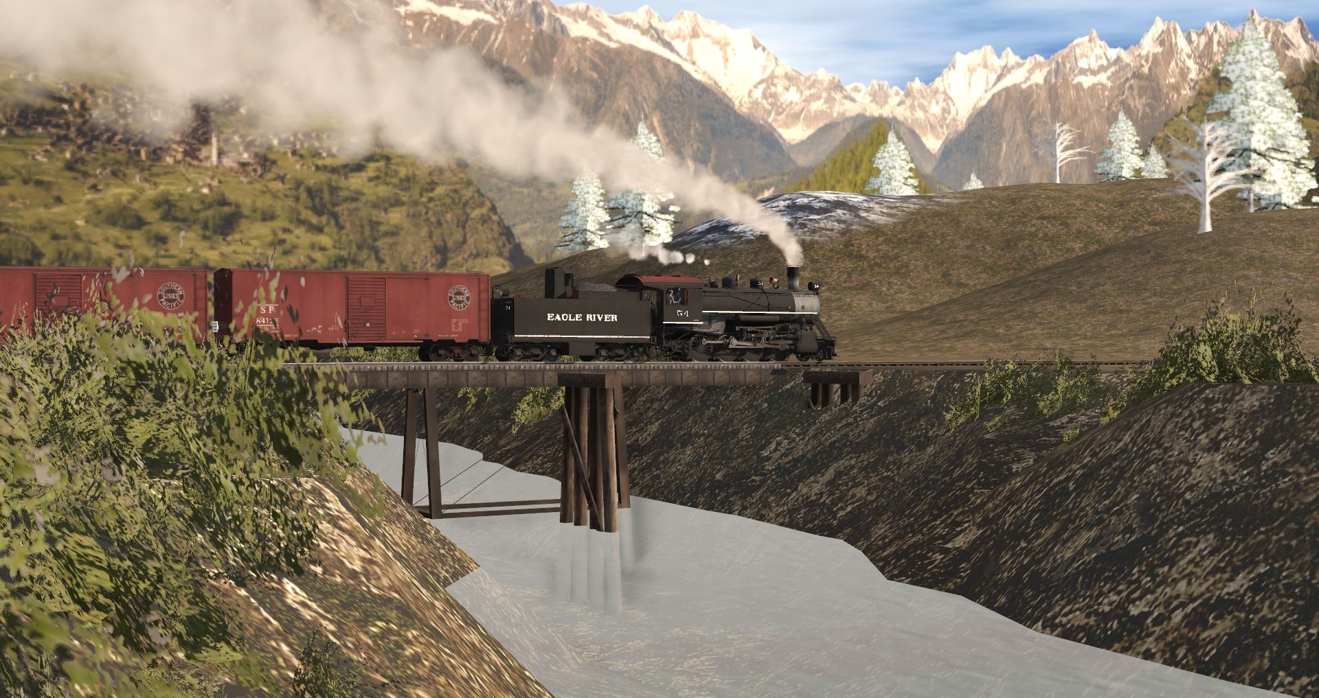 Tags: Trainz Railroad Simulator 2019, Frost River Central V.31, Frost River Central V.31 - Default, 30ng 2-4-2T, Eagle River 2-8-0 Engine, C&HR 2-8-0 L4 #909, 40ft Boxcar SP B-50-20, 40ft Boxcar CN, 40ft Boxcar Erie - Steel Ends, 38' X-3 Tank Car UTLX, C&HR Caboose #1753, 30ng 30 foot flatcar, 30ng 30 foot Boxcar, 30in Snowplow