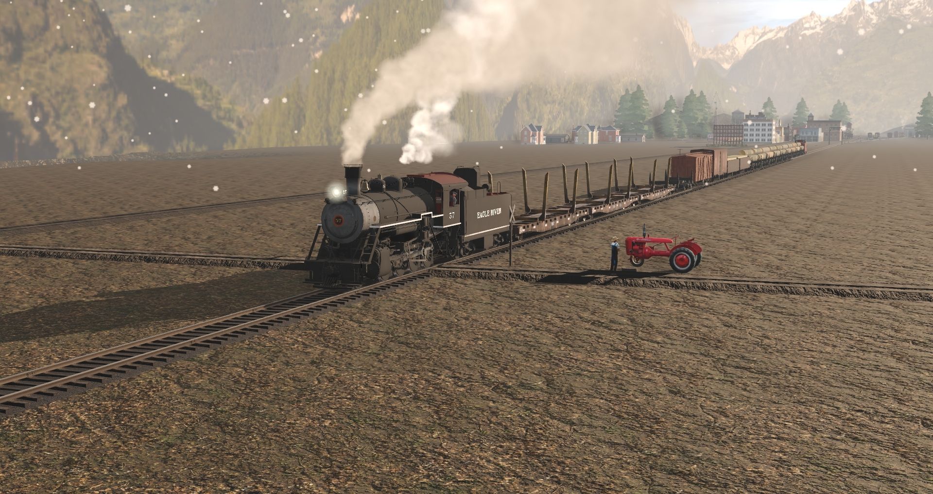 Tags: Trainz Railroad Simulator 2019, Frost River Central V.32, Frost River Central V.32 - Default, Eagle River 2-8-0 Engine, ALCO 0-6-0T Blank v1, ERSX 54ft flatcar, Eagle River Skeleton 43ft MLOG, 40ft Boxcar Fowler B&M, 40ft Boxcar CN, USRA C Gondola KCS, USRA C Gondola L&N, C&HR Caboose #1753, 30ng Coach, 30ng 30 foot flatcar