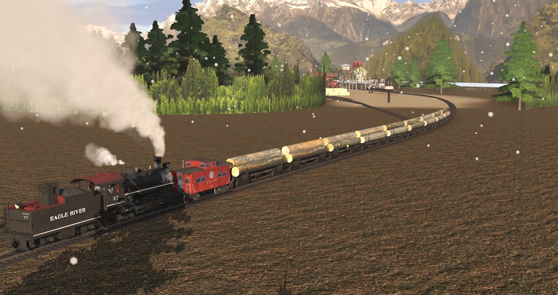 Tags: Trainz Railroad Simulator 2019, Frost River Central V.32, Frost River Central V.32 - Default, Eagle River 2-8-0 Engine, ALCO 0-6-0T Blank v1, 0-4-0T New Hope Valley 17, 40ft Boxcar Fowler B&M, Eagle River 2-8-0 Tender, 40ft Boxcar CN, USRA C Gondola KCS, ERSX 54ft flatcar, Generic Bobber Caboose, WVRR 30' Flatcar 1920s, C&HR Caboose #1753