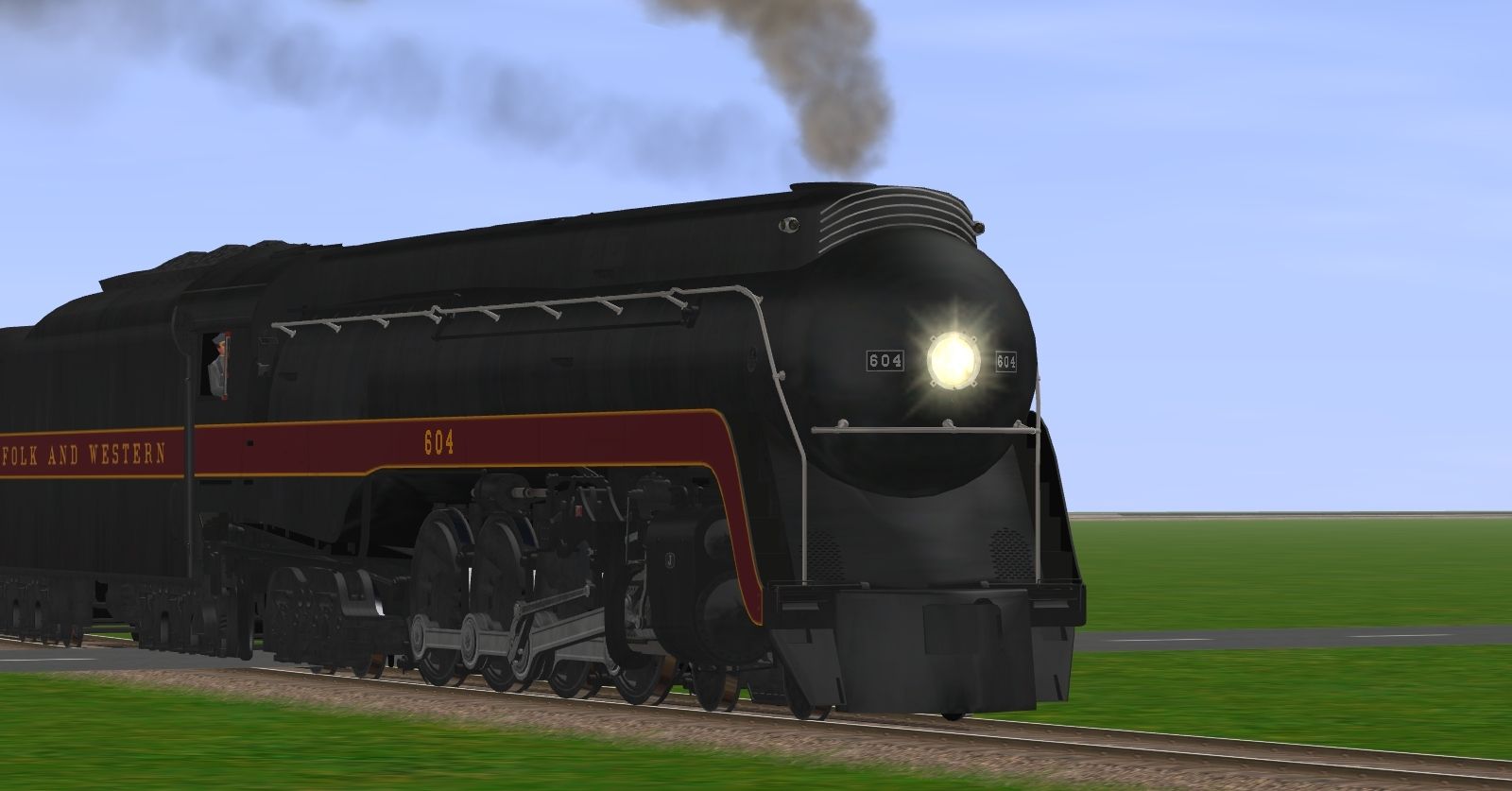 Tags: Trainz: A New Era, New Route, Default, PM Berkshire Engine V2, N&W J Class Engine, PM Berkshire Tender, PM Aux Tender MSTX5000, SP Lightweight Cascade Baggage-Mail, N&W J Class Tender, N&W Tool Car #1407, N&W NS Powhatan Arrow 02 P2 Divided Coach 511, SP Lightweight Cascade 12 DBR, N&W Powhatan Arrow 06 D1 Diner 494, N&W Powhatan Arrow 07 P4 Observation Lounge 582