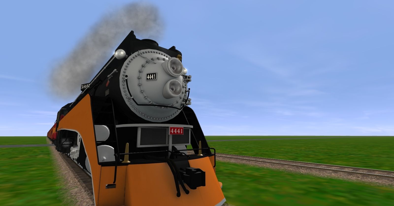 Tags: Trainz: A New Era, New Route, Default, SP GS-4 Engine Daylight V3, SP GS-4 Tender Daylight Prewar, SP 1937 Coast Daylight Baggage-Chair Car, SP 1937 Coast Daylight Tavern Car, SP 1937 Coast Daylight Chair Car, SP 1937 Coast Daylight Parlor Observation Car, UPRR FEF Black oil tender, UP Lightweight 1947 COP 6-6-4 American Trooper, UP Lightweight 1947 COP Blunt End Lounge 1518, UP Lightweight 1947 COP Coach 5355, UP Lightweight 1947 COLA Obs Sun Valley