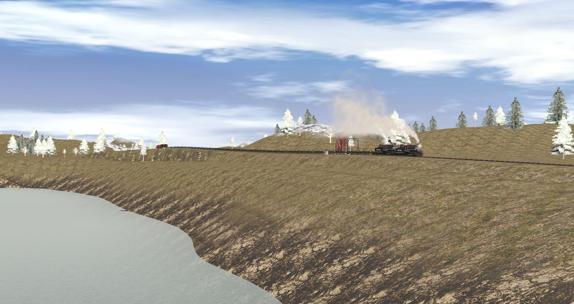 Tags: Trainz Railroad Simulator 2019, Frost River Central V.33, Frost River Central V.33 - Default, Eagle River 2-8-0 Engine, Eagle River 2-8-0 Tender, Eagle River Skeleton 43ft MLOG, 40ft Boxcar LE&E AAR War Bonds, C&HR Caboose #1751