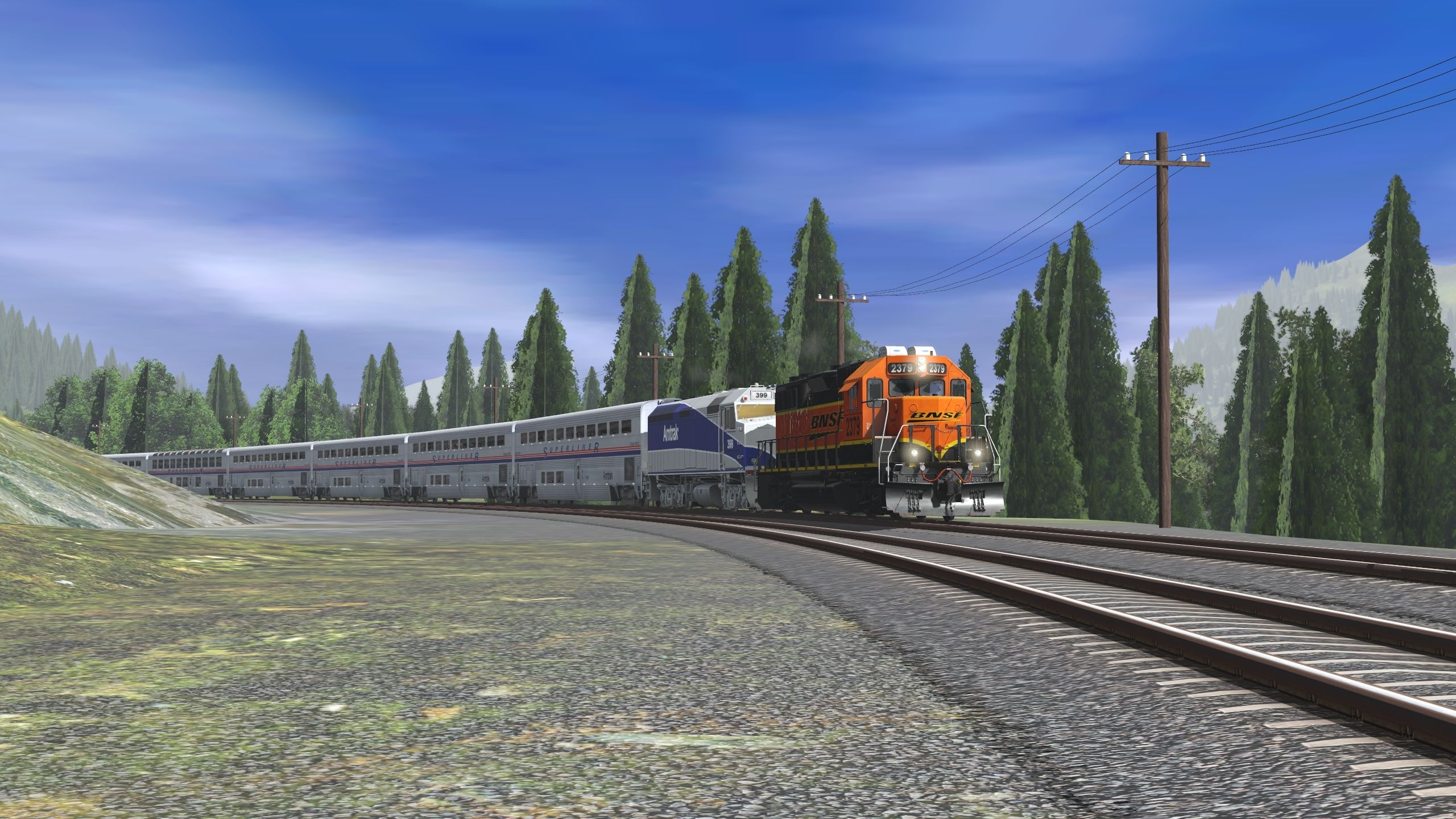 Tags: Trainz Railroad Simulator 2019, Marias Pass Route X - 2, Amtrak Rescue, GP38-2 BNSF modern HP01T, Amtrak F40PH blue stripes HP, GP38-2 BNSF heritage HP02T, Amtrak F40PH 398, Superliner II Coach 34120, Superliner II Sightseer Lounge 33049