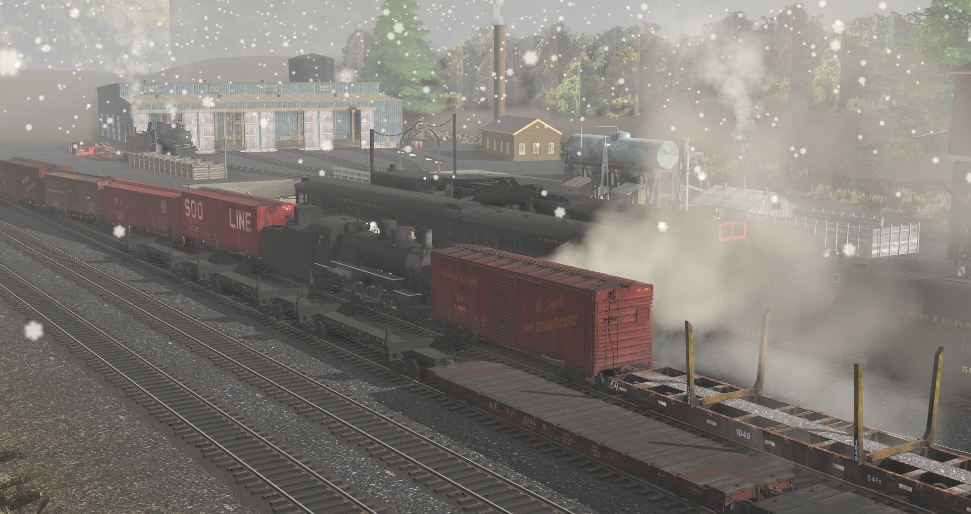 Tags: Trainz Railroad Simulator 2019, Frost River Central V.442, Frost River Central V.442 - Default, Erie J-2 Engine V1, 70ton AAR Flatcar C&O, USRA C Gondola SP, 30ng Combine, 70ton AAR Flatcar ATSF FT-V, WP 301 Series Coach, USRA C Gondola L&N, YVRR Caboose 15 - Third, WP 501 Series Dining car, 40ft Boxcar UP B-50-24, YVRR Caboose 16 - Third