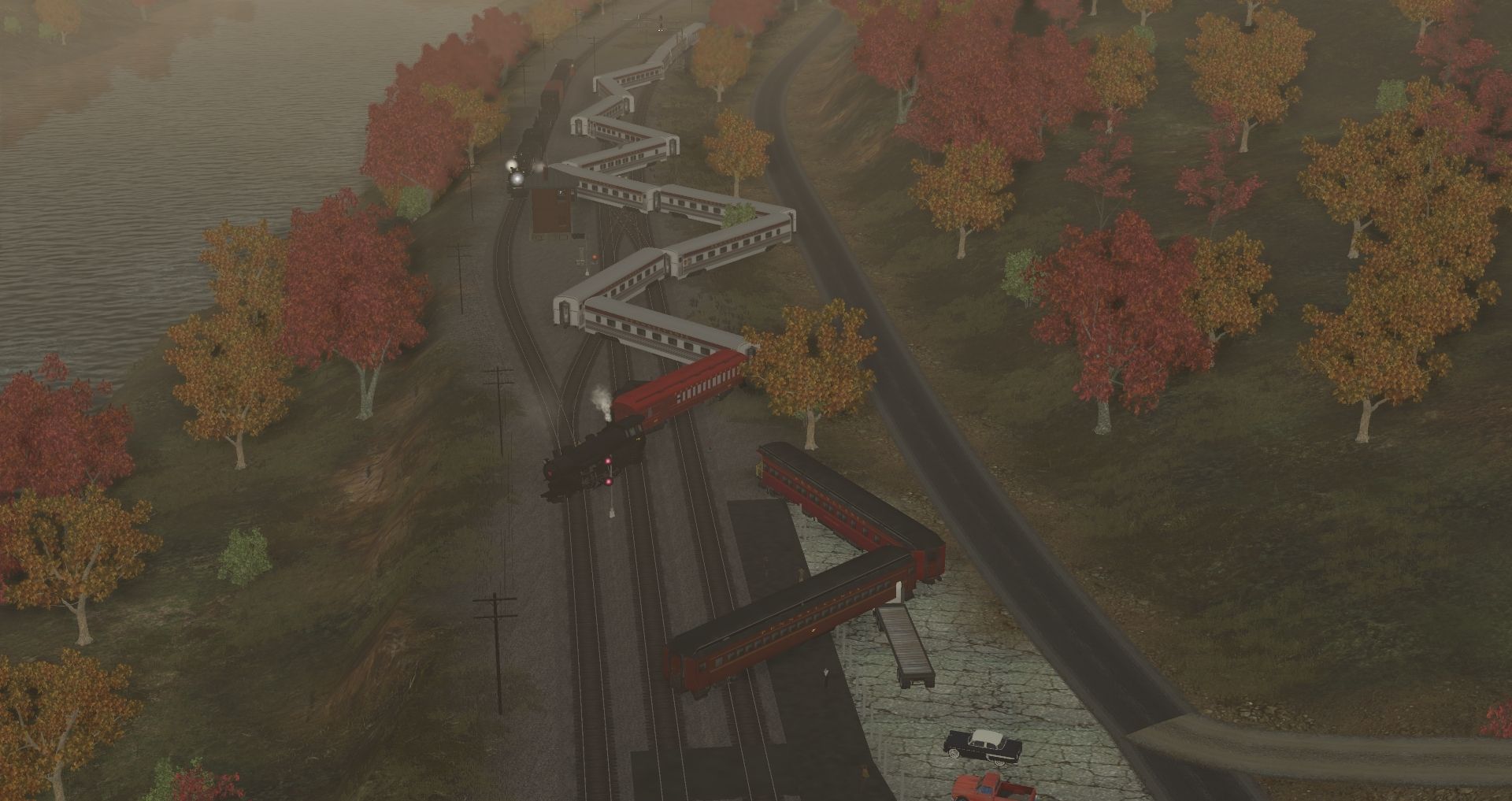Tags: Trainz Railroad Simulator 2019, C&O Hinton Division, Default, PRR K4 1361 4-6-2, PRR K4 3750 4-6-2, PRR EMD F3 Phase IIa doors open, PRR EMD F3B Phase III, PRR EMD F3 Phase IIb doors closed, NKP 765 with black drivers, PRR Caboose N5B 1949 # 477772, PRR K4 1361 4-6-2 Tender, PRR P70 Coach, PRR P70 Observation, PRR B60b Baggage
