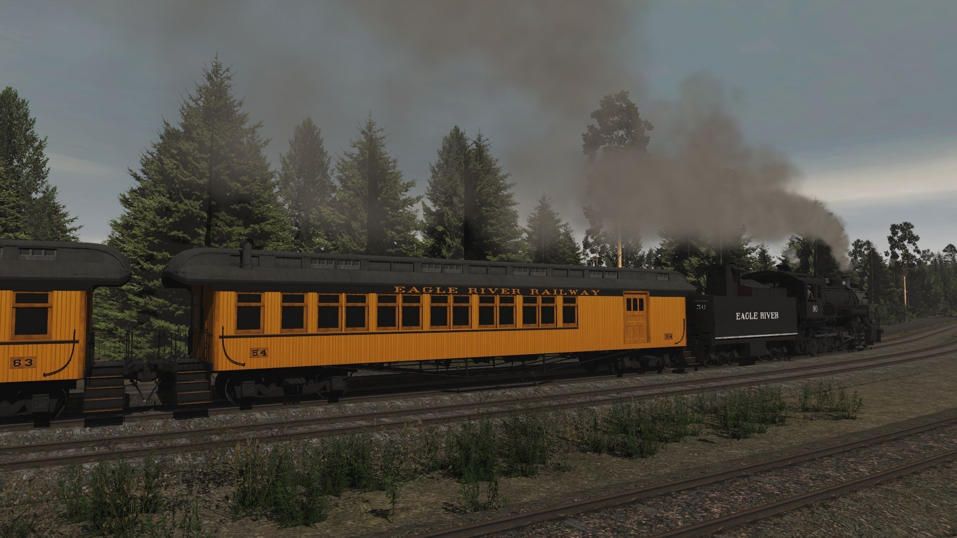 Tags: Trainz Railroad Simulator 2019, Eagle River Railway-Open Sandbox, Eagle River Railway-Open Sandbox - Default, SRC 90 Engine V7, Eagle River 02 Wood Coach, Eagle River 01 Wood Combine, Eagle River 2-8-0 Tender, SRC 07 Parlor Marian