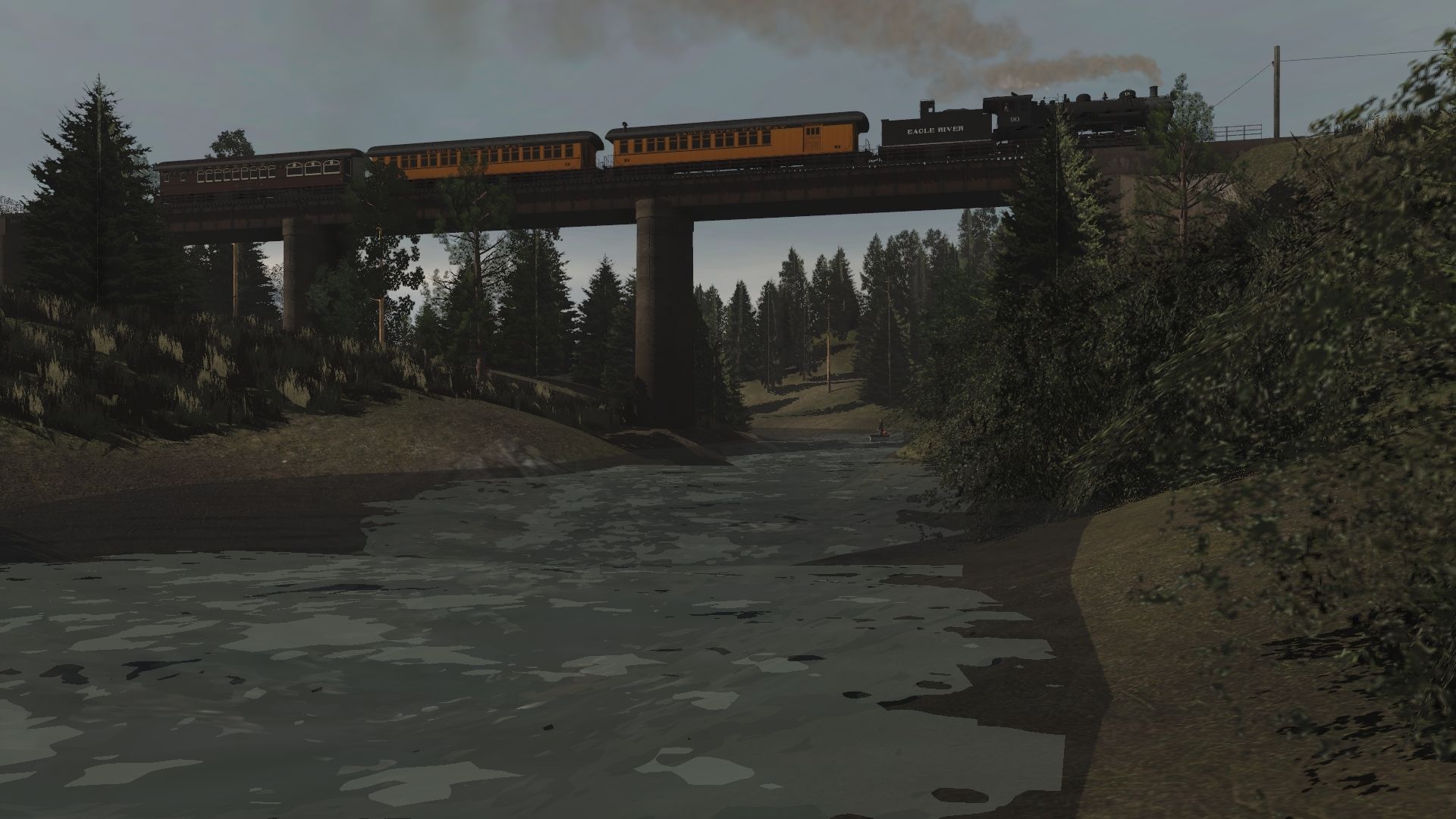 Tags: Trainz Railroad Simulator 2019, Eagle River Railway-Open Sandbox, Eagle River Railway-Open Sandbox - Default, SRC 90 Engine V7, Eagle River 2-8-0 Tender, Eagle River 01 Wood Combine, Eagle River 02 Wood Coach, SRC 07 Parlor Marian