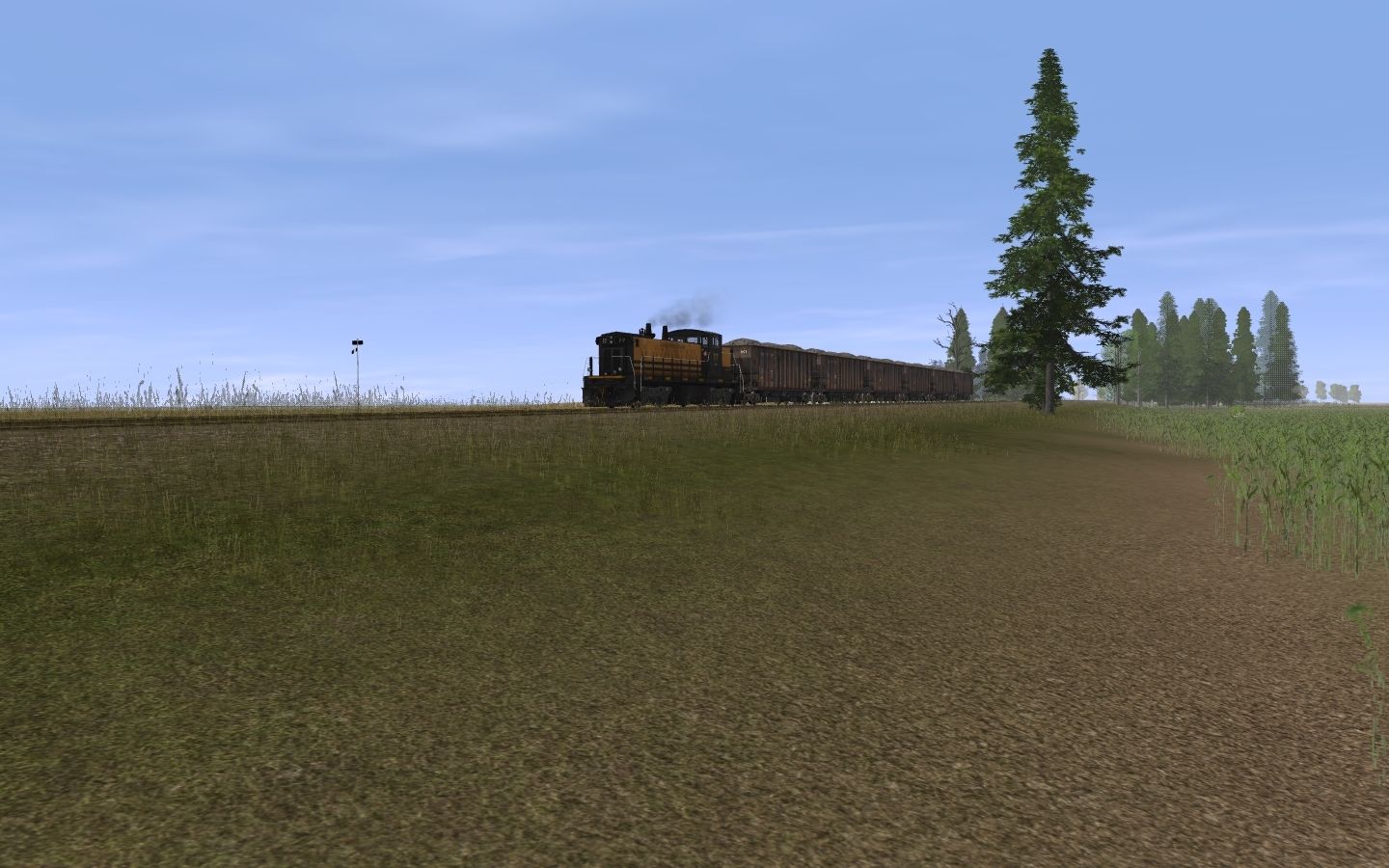 Tags: Trainz: A New Era, Larder Island RR, Default, ERSX GMD-1 77 (Ex CN), ERSX MOW 100 Ton Hopper