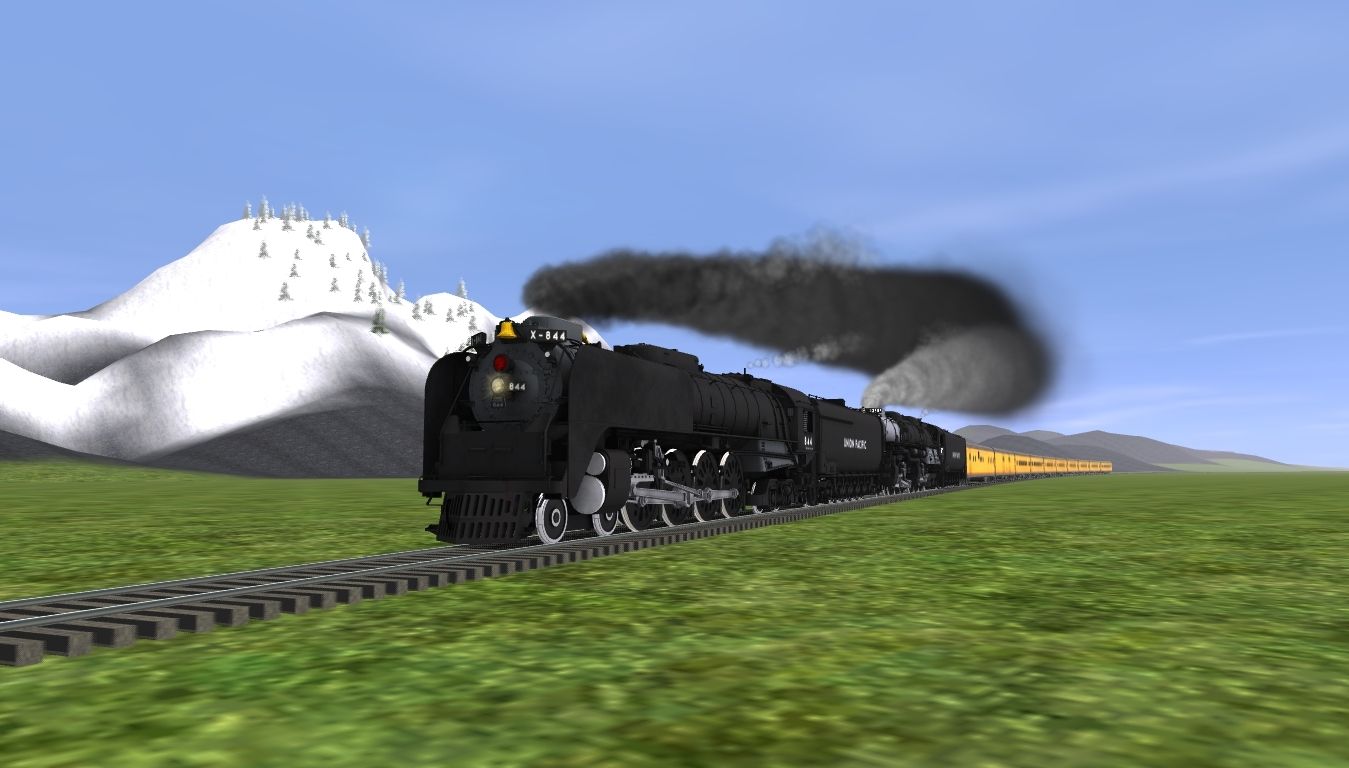 Tags: Trainz: A New Era, New Route, Default, UPRR FEF-3 844, UPRR Challenger Oil, UPRR FEF Black oil tender, UPRR Centipede tender oil, up Lightweight COLA Baggage Aux Power Dorm, UP Lightweight 1954 COSF Baggage 5704, UP Lightweight 1947 COLA Coach LA-406, UP Lightweight 1947 COLA Coach CNW 3429, UP Lightweight 1947 COLA Coach 5361