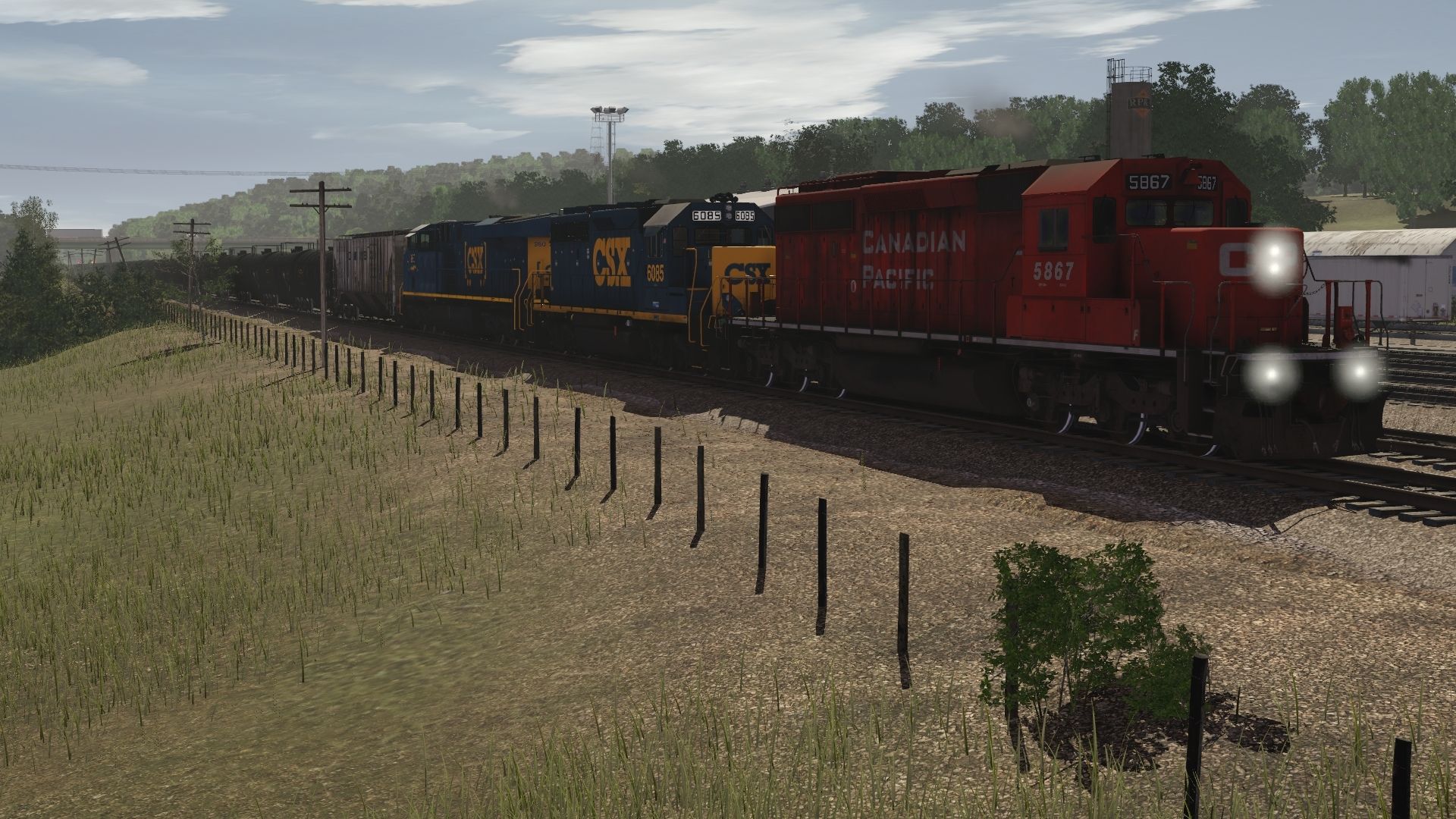 Tags: Trainz Railroad Simulator 2019, Coal Country, CSX, CP Rail SD40-2 5865-5879 Block Letter Logo, CSX GP40-2 YN3, CSX ES44AH YN3TL, CSXT LO 4750 3 bay, UTLX 23000 gal Funnel-Flow tank car