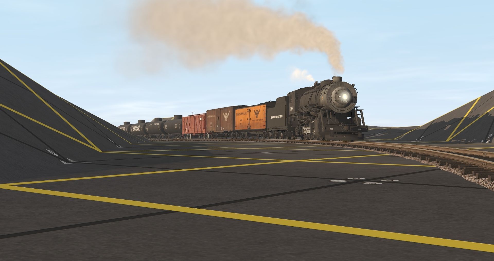 Tags: Trainz Railroad Simulator 2019, Kemonomimi Southern V0.171, Kemonomimi Southern V0.171 - Default, KSRy 1204 Engine, KSRy Heavy Consolidation Tender, B&URR Reefer W Early, 40ft Boxcar B&URR A, 40ft Boxcar Fowler CA&L 1, 38' X-3 Tank Car HTCX, 38' X-3 Tank Car DCWX, 38' X-3 Tank Car Sinclair, RDG HTj Hopper, KSRy caboose Wood Northeastern Warning Stripe, 40ft Boxcar Fowler NYC MCRR 1