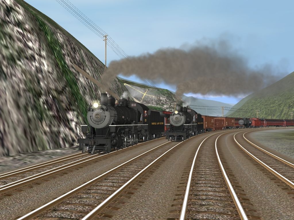 Tags: Trainz: A New Era, PRR Huntingdon to Johnstown 1a, N&W test 1a, N&W M Class Engine V2, N&W M Class Tender V1, N&W M Class Tender V2, SRC Parlor Marian, M&PA Wood Boxcar, SRC Dining Lee E Brenner, PRR H21a Hopper, SRC Lounge Henry K Long, M&PA Flat Car, Tidewater Tank Car, SRC Coach Warren F Benner