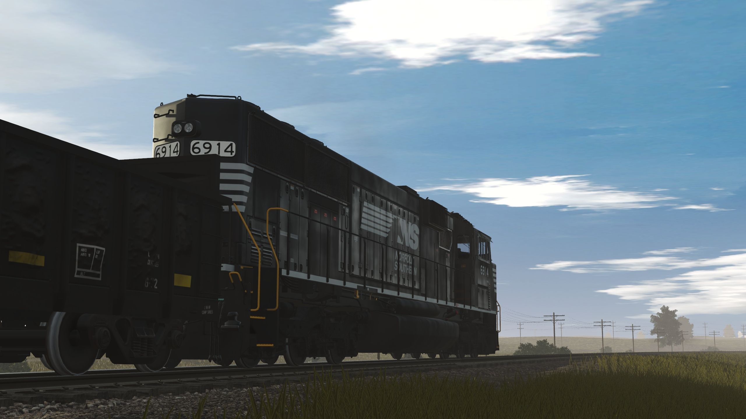 Posted by: epa | Posted:2019-11-29 08:48:13 Caption: Tags: Trainz Railroad Simulator 2019, Heart of Illinois, NS SD60E, NS G72 Gondola