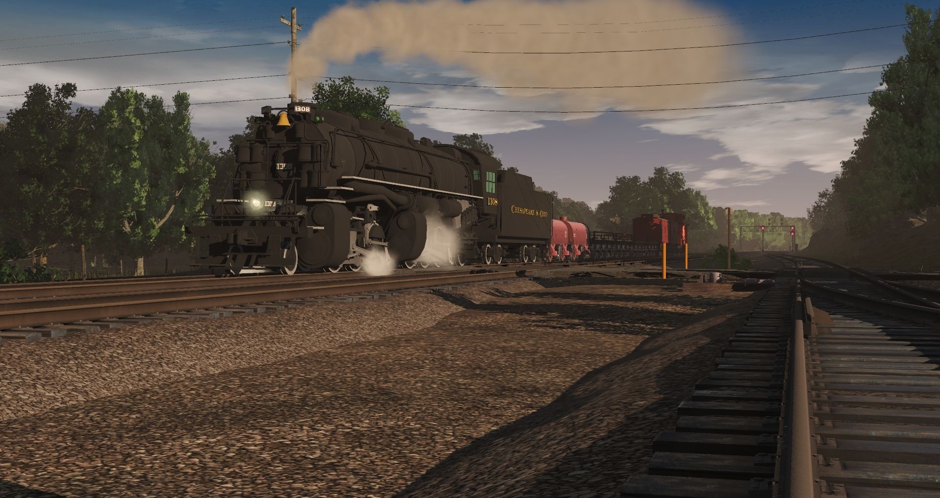 Tags: Trainz Railroad Simulator 2019, Coal Country, CSX, C&O H-6 Mallet #1308 Engine (New), C&O H-6 Mallet #1308 Tender (New), VR WT water tank - BG, VR G Carriage Truck #61 - W, VR F Horsebox T6 - BG, Caboose C&O 90212 red