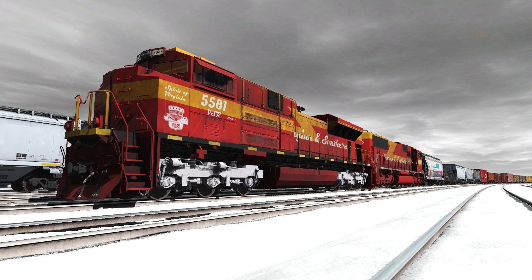 Tags: Trainz Railroad Simulator 2019, CSX Mountain Region, Free Roam, VSR SD70M-2 #5581, VSR SD70AC #5580, SD50 UP #9861, NS SD60E Veterans (K5LA), SD60 Oakway Modern 09, SD40-2 NS, NS SD60E (DIT), SD40-2 NS #6073, RWRR 50ft High Cube Boxcar, JR Cylindrical Hoppern CSX clean 1, CN 50' ACF Boxcar 1