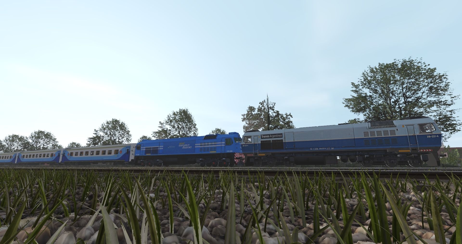 Tags: Trainz Railroad Simulator 2019, Zona de Pruebas, GM J16CW/AC 319-237-4 Trenes Argentinos, GM J16CW/AC 319-206-9 Nuevos Ferrocarriles Argentinos, BR Freight CAR Brake Bauxite, CNR-PUAD-004
