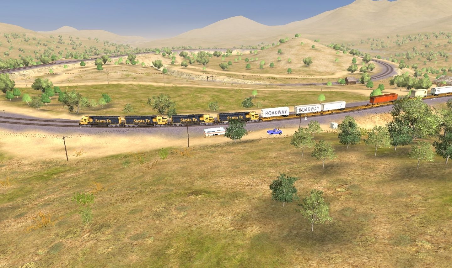 Posted by: jazzpianoman | Posted:2019-12-01 22:37:37 Caption: Tags: Trainz: A New Era, Mojave Sub Division, ATSF #991 East, ATSF SD45, TTX 89ft TOFC Flatcar