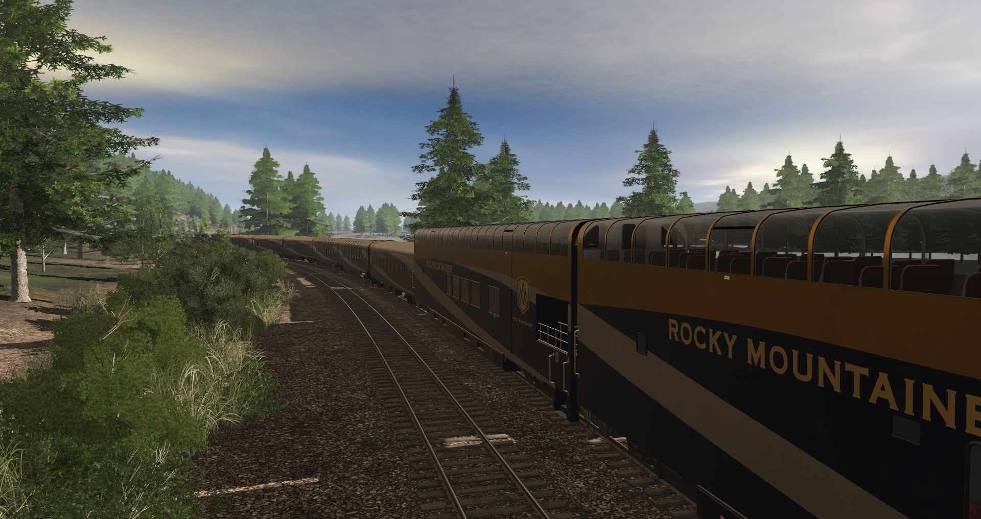 Tags: Trainz Railroad Simulator 2019, Canadian Rocky Mountains - Golden BC, 02 Rocky Mountaineer - Eastbound Engineer, RMRX GP40-2, RMRX 'Gold Leaf' Ultra Dome, RMRX 'Silver Leaf' Glacier Dome, RMRX 'Red Leaf' Coach, RMRX Baggage/Generator