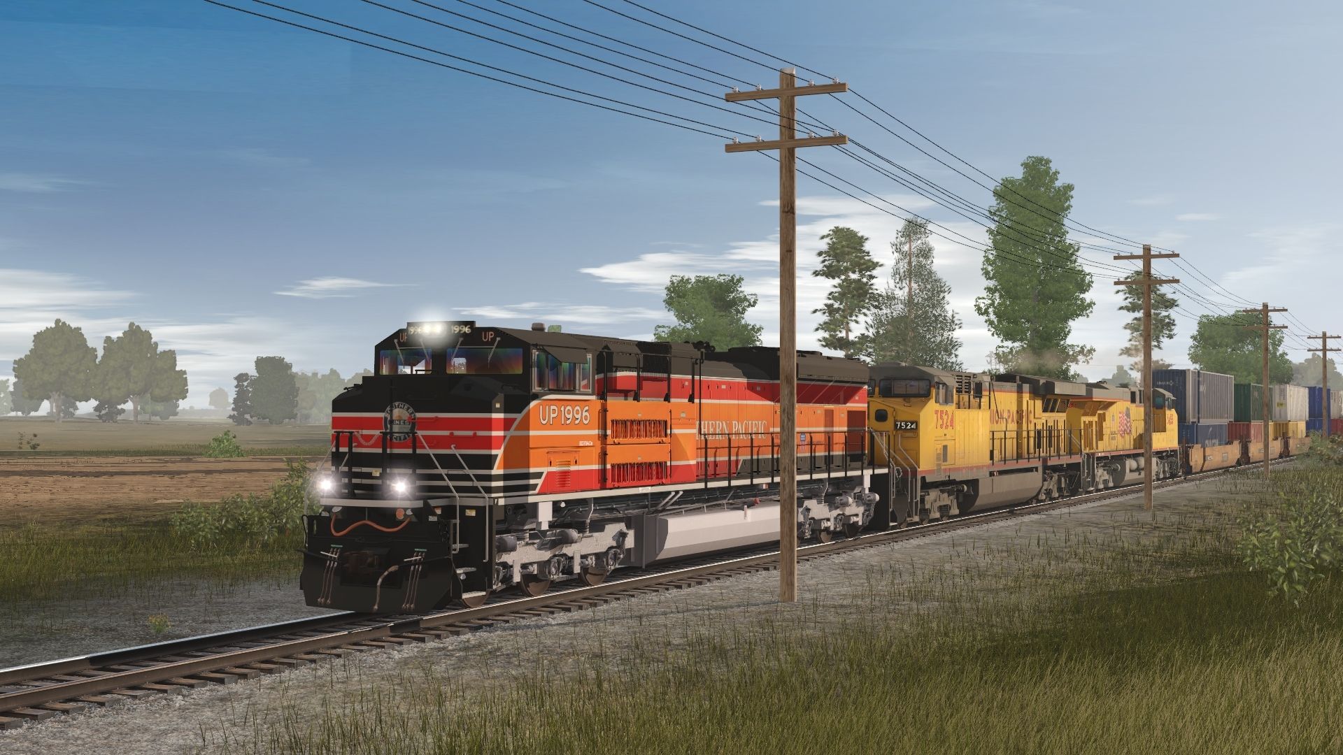 Tags: Trainz Railroad Simulator 2019, TRS19 - NS Sandusky District - Stage 1 - Route, Freeroam, UP Heritage SP SD70ACe, UP AC6000CW ph2, UP ES44AC, TTX weathered 53 Husky Stack
