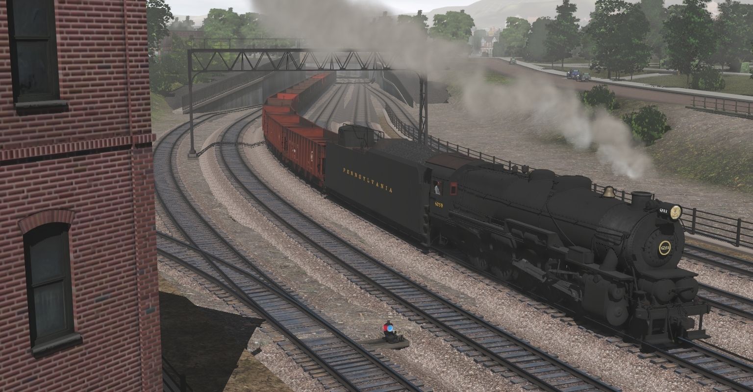 Tags: Trainz Railroad Simulator 2019, PRR pitts steve, Default, PRR I1sa Engine Pre-War, Huddersfield Tram #28, PRR I1sa Tender Coast to Coast Post-War, PRR H21a Hopper, PRR N5c Caboose 2