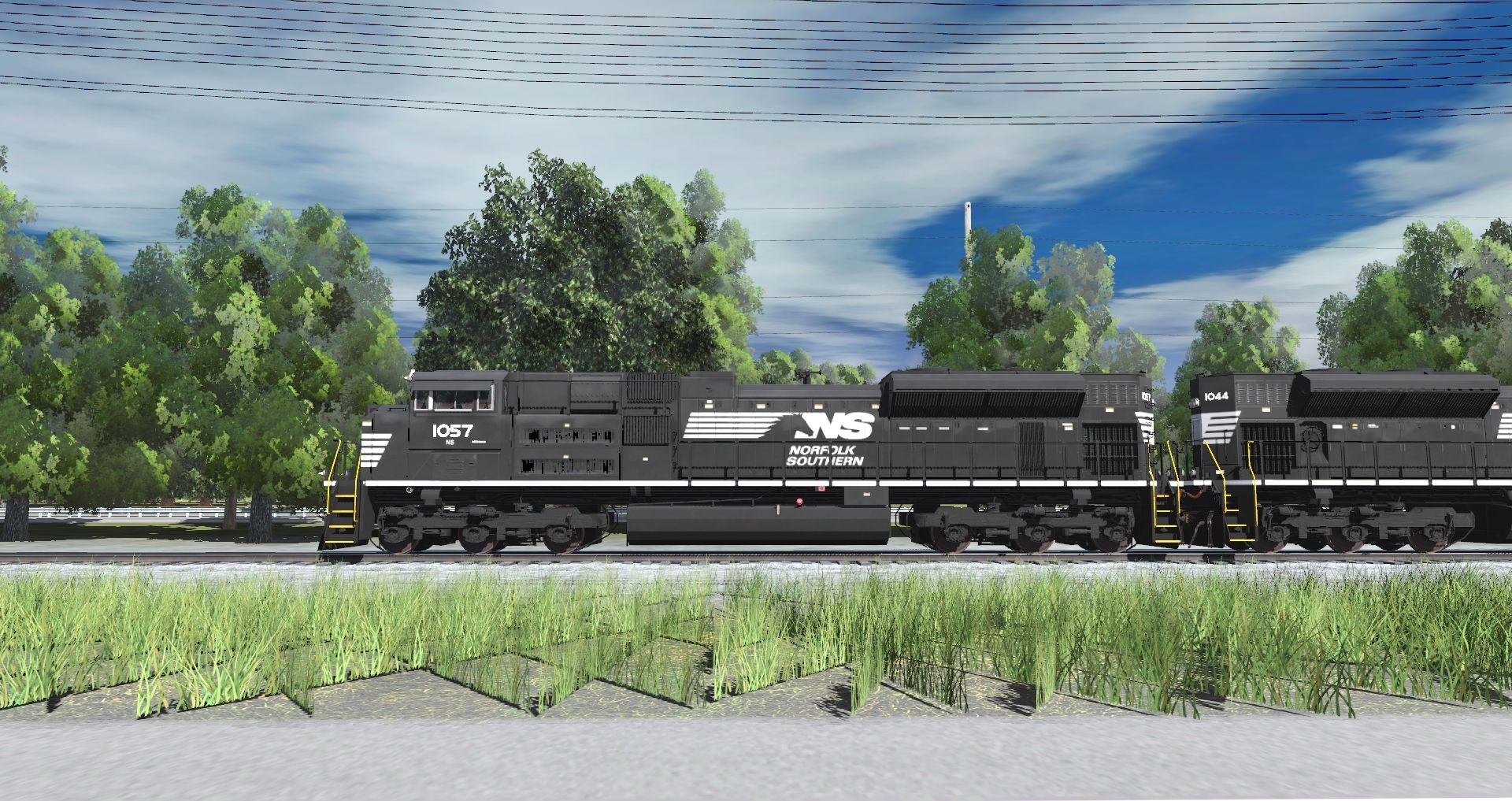 Posted by: Conductordj16 | Posted:2019-12-08 04:32:45 Caption: drive by Tags: Trainz Railroad Simulator 2019, Norfolk Southern Opeya District, Default, NS SD70ACe, NS ES44AC, AP53 TTX Wellcar A