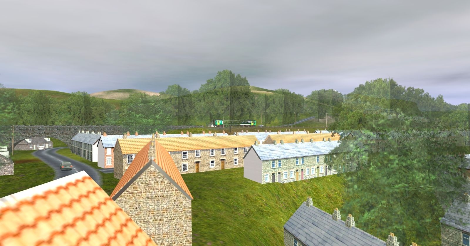 Caption: An LM 153 has just passed the long bridge on appraoch to Ashton Station, viewed from the low town